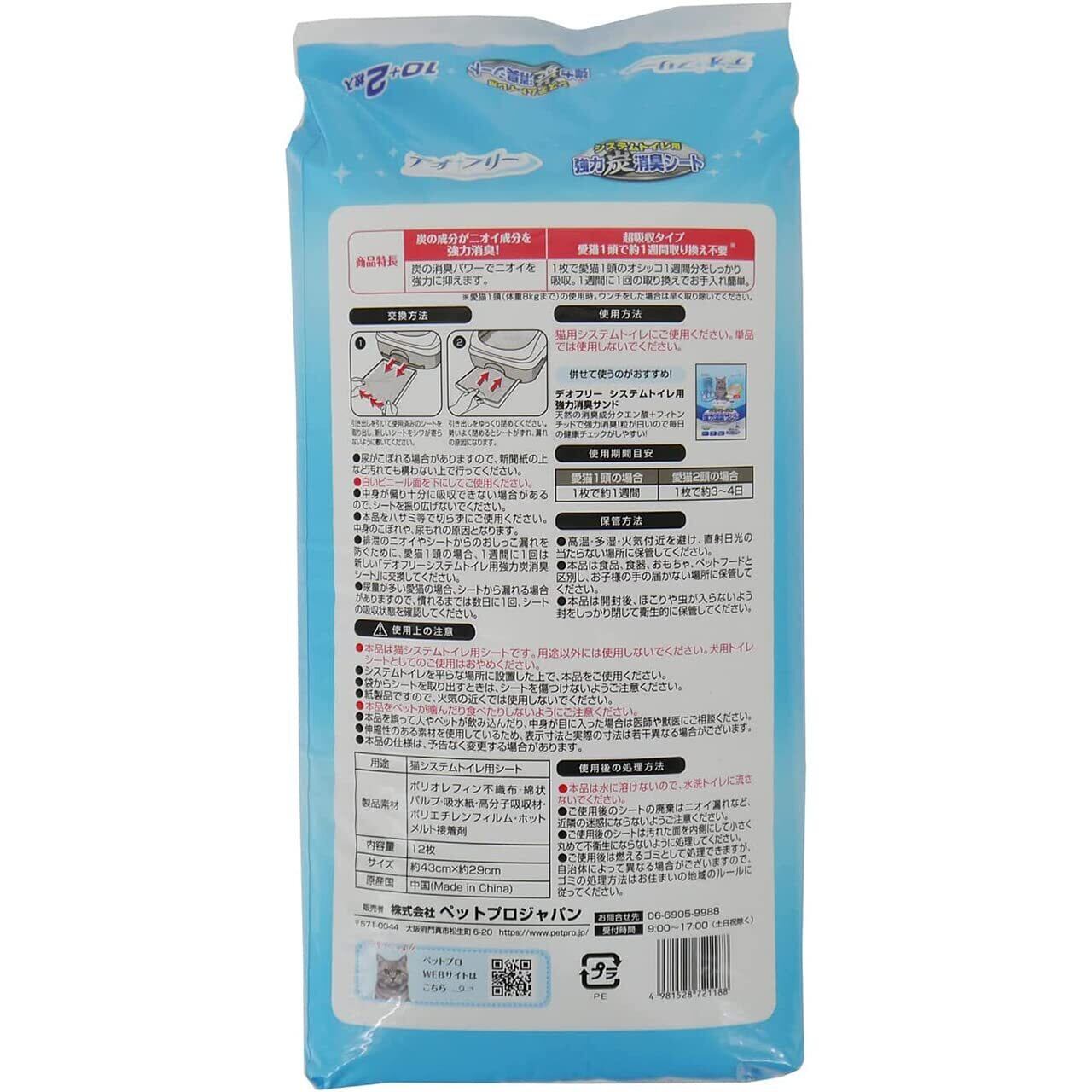 ペットプロ デオフリー システムトイレ用強力炭消臭シート 10+2枚入 トイレ用強力炭消臭シート