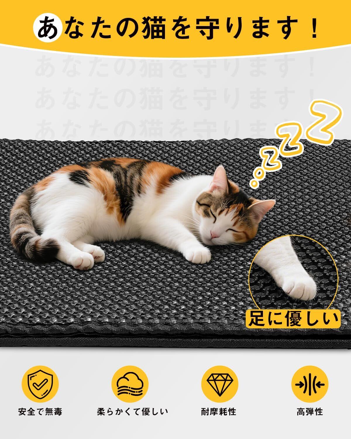 Ycozy 特大猫砂マット 90×60cm 猫トイレマット ダブルサイドベルクロ 4面開口デザイン 猫砂取りマット 飛び散り防止マット 二重EVA 猫マット ハニカムデザイン 滑り止め 防水や尿の浸透防止