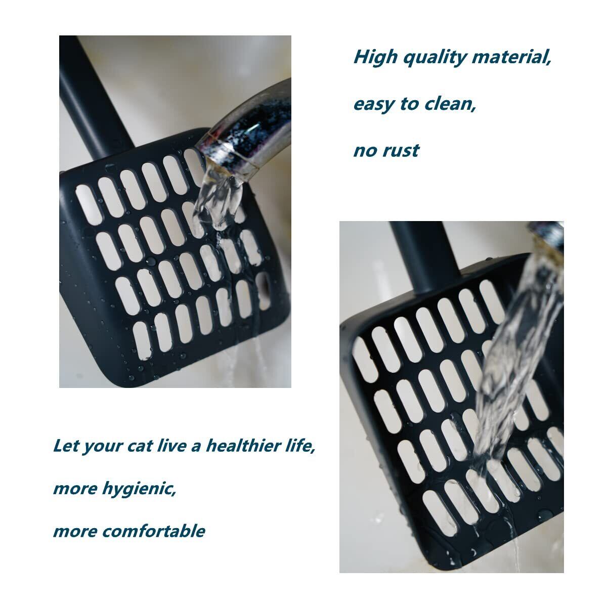 【高品質素材】:当社の猫用トイレシャベルは、高品質で耐久性のあるABS素材で作られており、猫の尿や洗濯に強く、長期間使用できます。 濡れると錆びやすい金属製の猫砂シャベルや、臭いで壊れやすいプラスチック製の猫砂シャベルと比べて、ベストチョイスです。