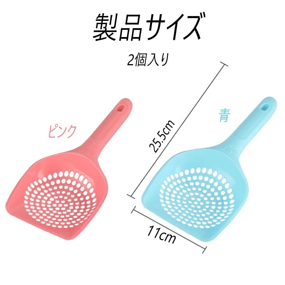 YACHUN 猫砂スコップ 2個セット ネコトイレスコップ 小きな穴 ペットうんち砂クリーナー 猫砂スコップ ペットトイレ用品(ピンク+青)