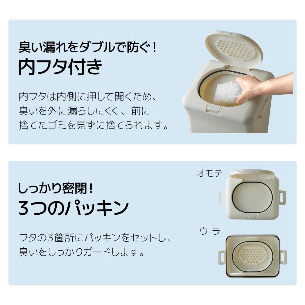 【二重フタ構造】臭い漏れをダブルで防ぐ内フタ付き。内フタは内側に押して開くので、臭いを外に漏らしません。