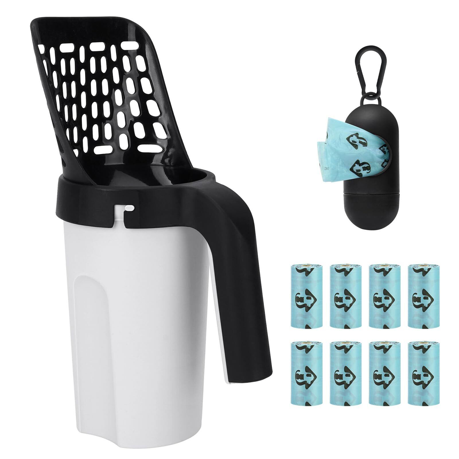 [ホルダー付き2 IN 1スコップ]猫砂スコップ+猫砂入れ+ゴミ袋の組み合わせユニークなデザインです。掃除と回収が一体となり、シンプルなスコップだけでなく、追加の袋も付いて、片手でペットのウンチを掃除でき、便利で毎日の掃除に適しています。