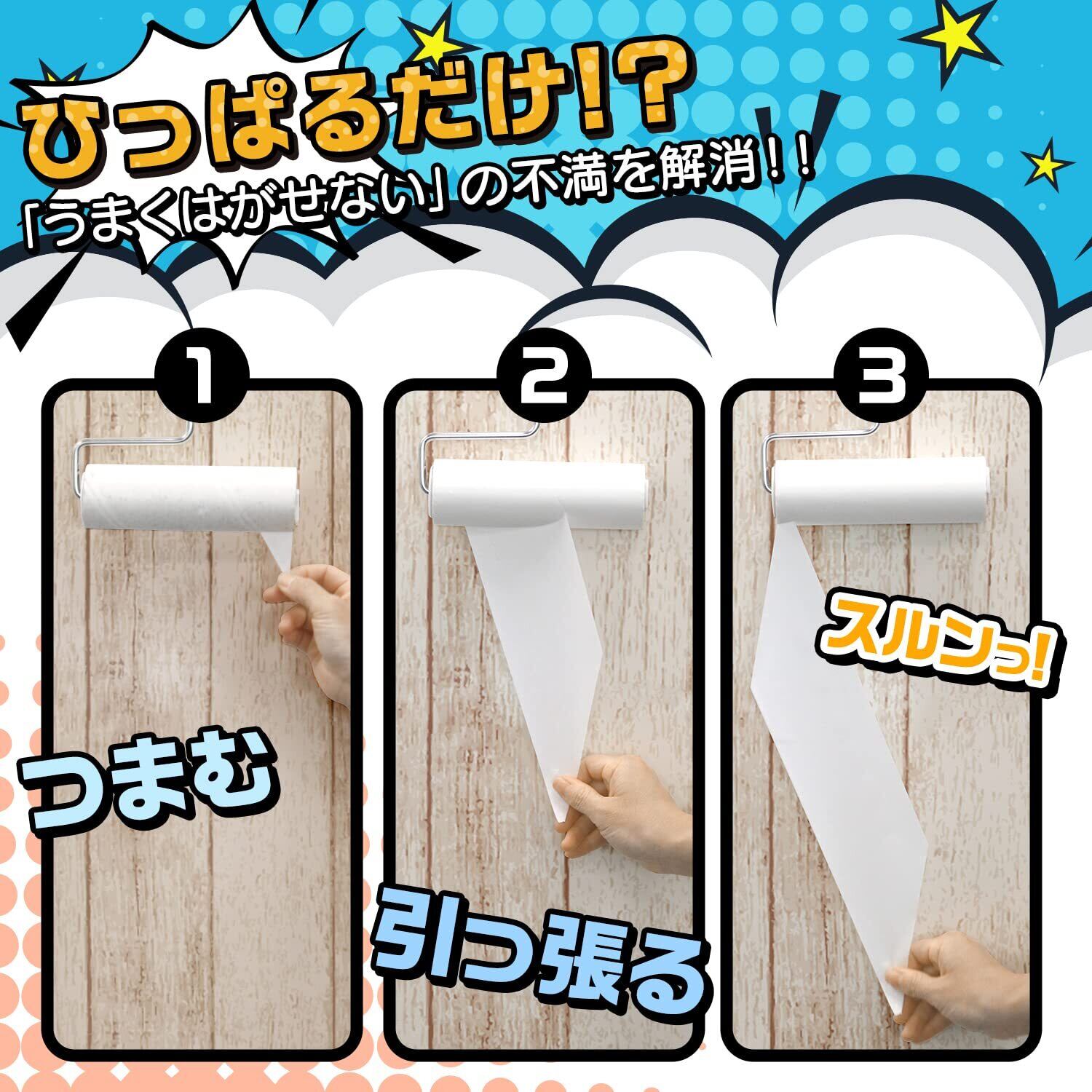 ●引っ張るだけで1周分がきれいにはがせます。(1枚はがすと1周分です)