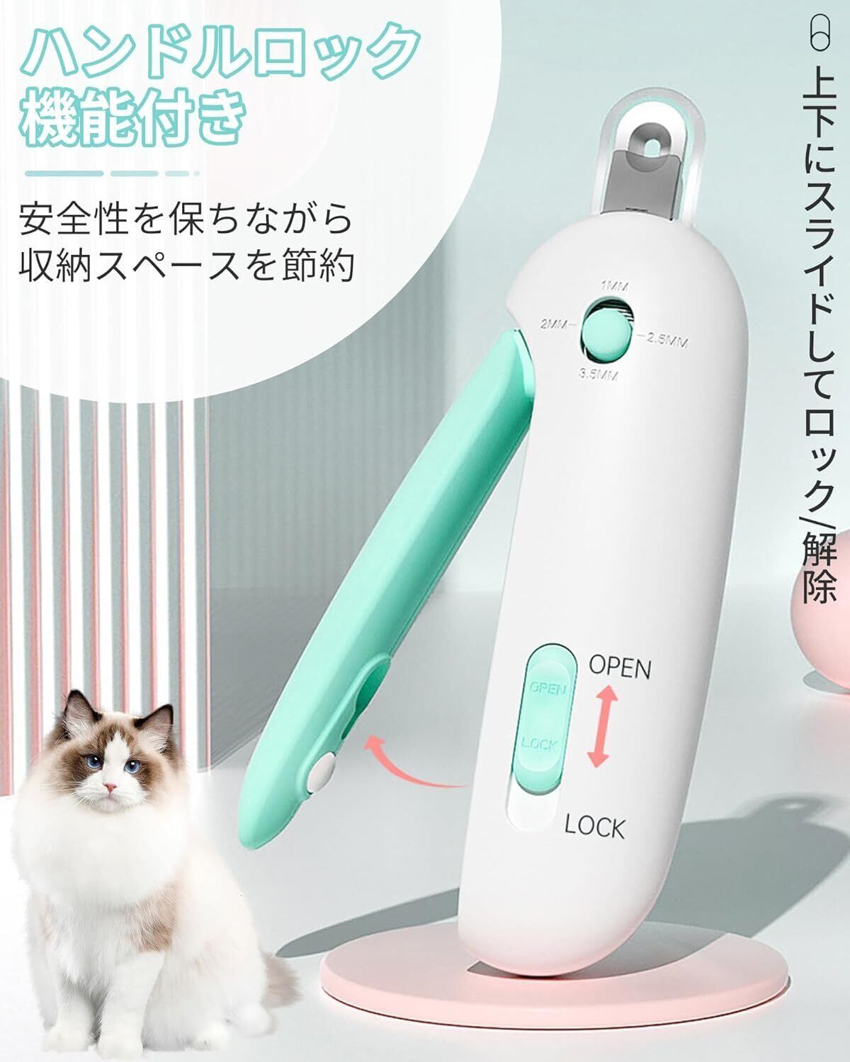 【新型】猫 爪切り 人気 犬 ペット用つめきり 隠し式爪やすり付き 深爪防止 飛び散り防止 1~3.5mm直径調整可能 小型犬 初心者 猫爪切り嫌がる対策 ステンレス製 猫用ネイルケア