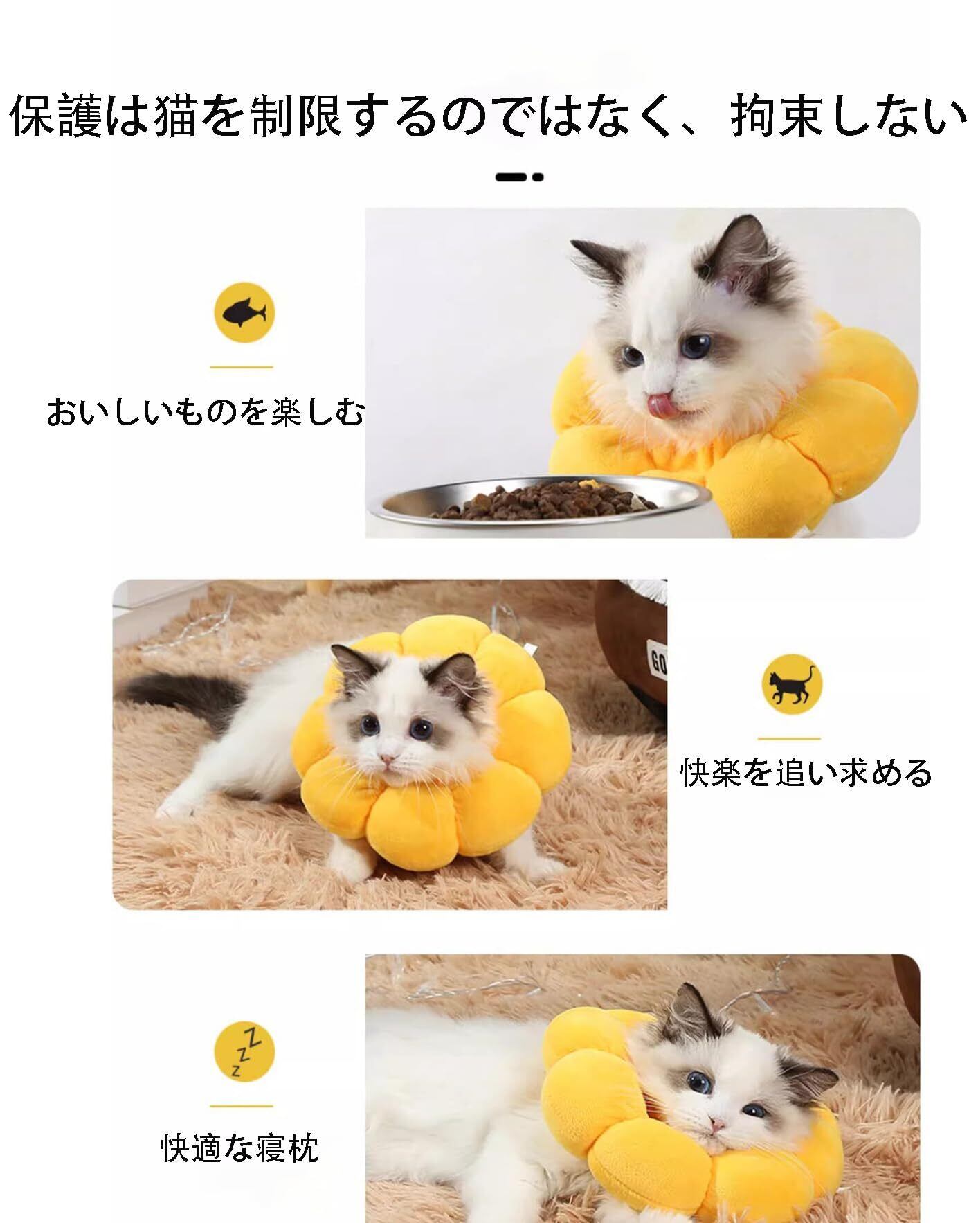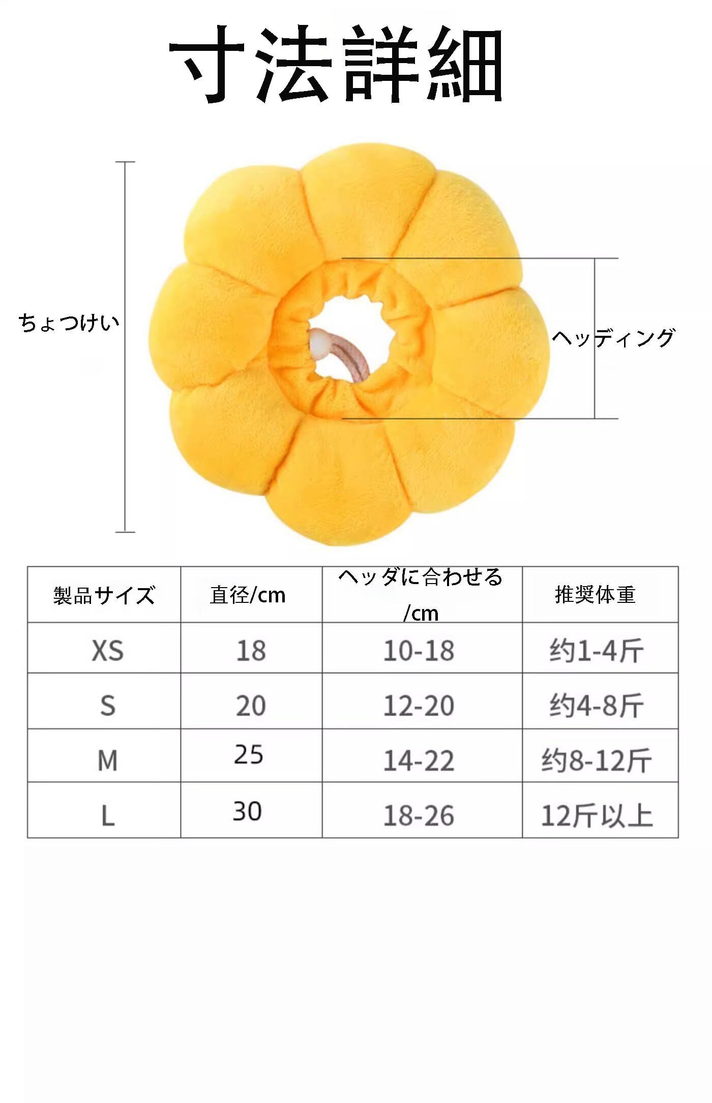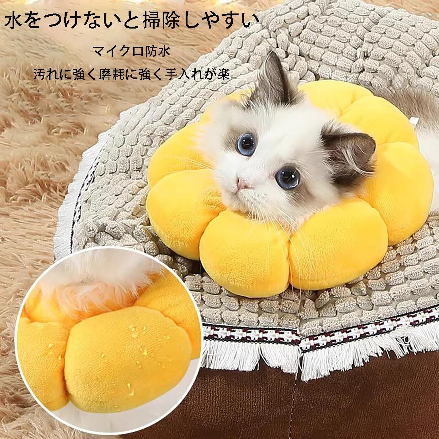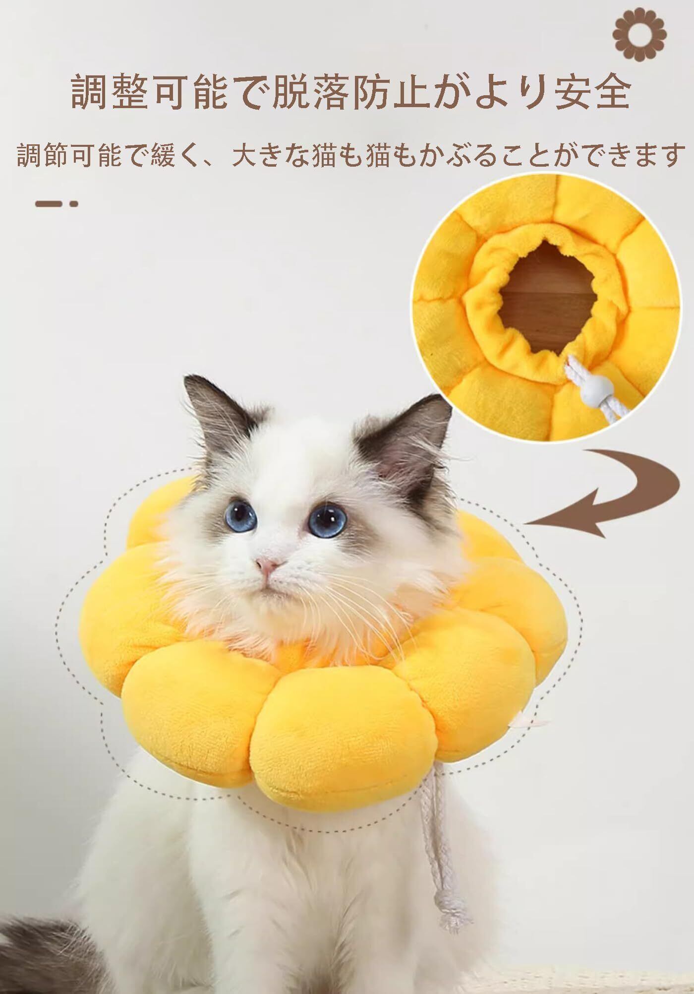 LUYING リザベスカラー 猫 犬 ソフト クッション 傷猫 犬 エリザベスカラー ペット用品 引っ掻き防止 調整可能 柔らかい 布製 超軽量 通気性 かわいい かわいいひまわり型 手術後のケアに ペット保護軽量 皮膚病 防止 (イエロー, S)