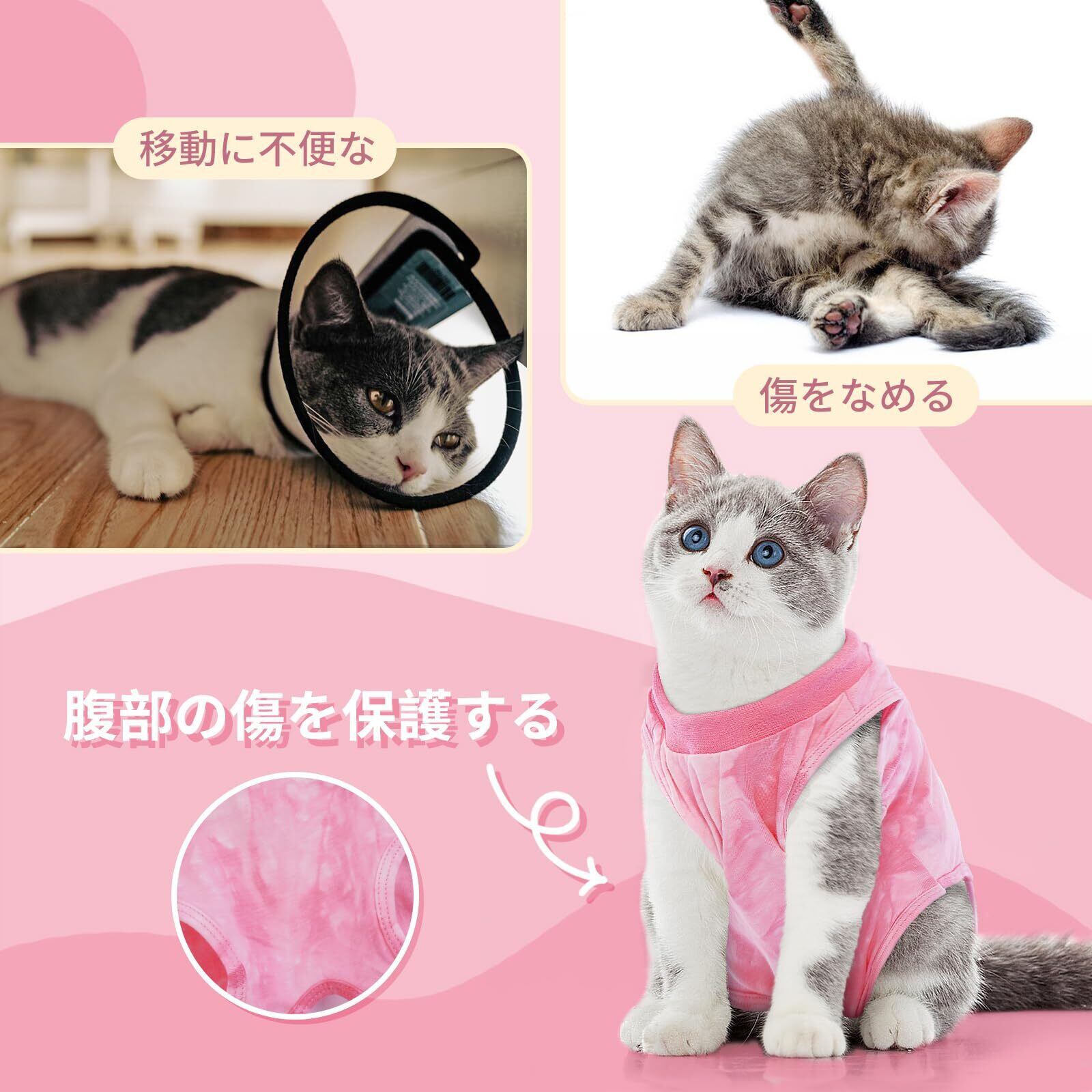 IECOii 猫 術後服 猫用リカバリースーツ 手術用 エリザベスカラーに代わり 舐め防止 ペット術後ウェア 皮膚保護 傷口保護 避妊 離乳 介護服 男女兼用 ピンク M