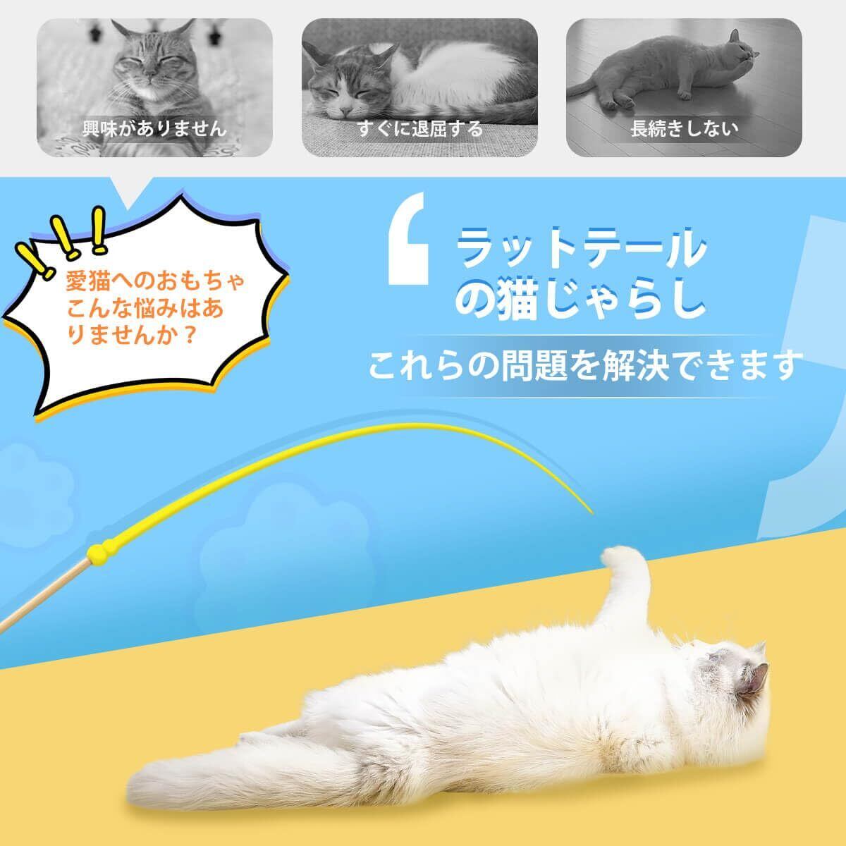 【超軽量シリコン素材】 この猫じゃらしは高品質なシリコン素材を使用し、シリコン製のネズミの尻尾部分は約 30cm で、竹の部分も約 40cm で、軽量で丈夫です。愛猫が遊びやすく、噛んでも安全なねこじゃらし商品です。シリコン製の尾は噛んでも安心な設計で、長持ちします。ペットの健康を考えた安全な猫 おもちゃ 人気商品です