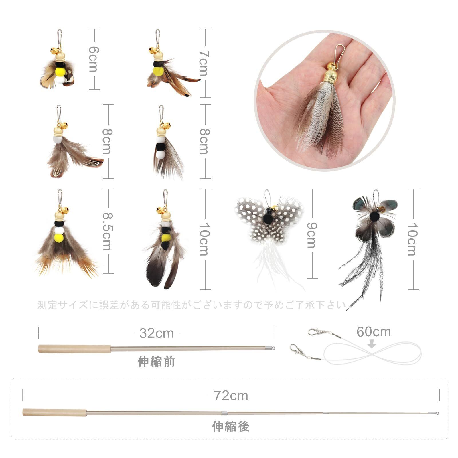 猫のおもちゃ:天然の羽で作った小飛ぶ虫*8、猫ちゃんの好みによって、じゃらしを取り替えることができます。愛猫はきっと夢中になるはずです。