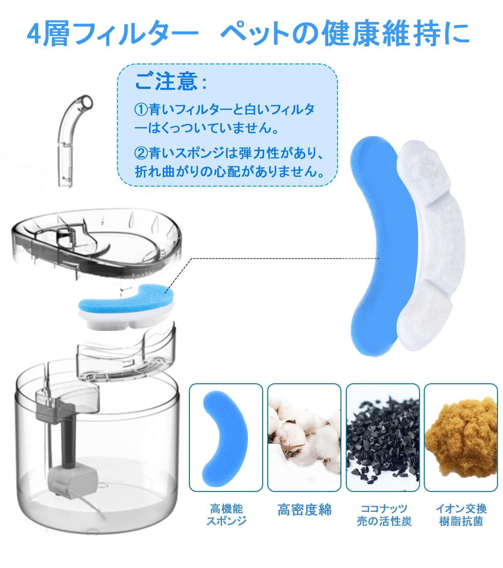 ald 猫 給水器 フィルター 水 給水機 軟水化フィルター ペット給水器交換用フィルター 自動給水器に適用 活性炭 イオン交換樹脂 (青い, 8)
