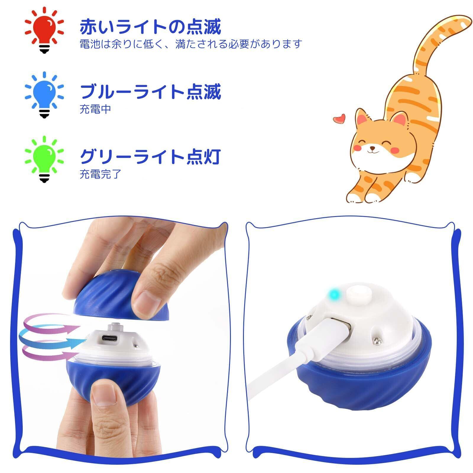 キャットハイ 犬ボール 犬おもちゃ 電動ボール ねこおもちゃ 猫ボール ペットおもちゃ 弾むボール 犬用品 猫用品 ペット用品 一人遊び USB充電式 光る 自動回転 お留守番 安全 運動不足・ストレス解消 新型 ねこ いぬ ブルー