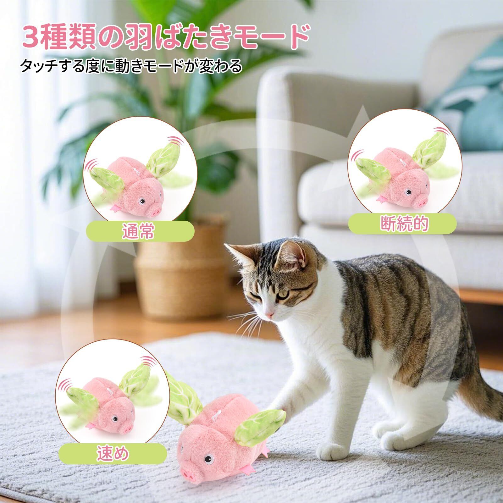 AUSCAT 猫 おもちゃ 自動 羽ばたく 動くぬいぐるみ 鳴く 電動玩具 またたび入り 一人遊び 豚 (飛べない)
