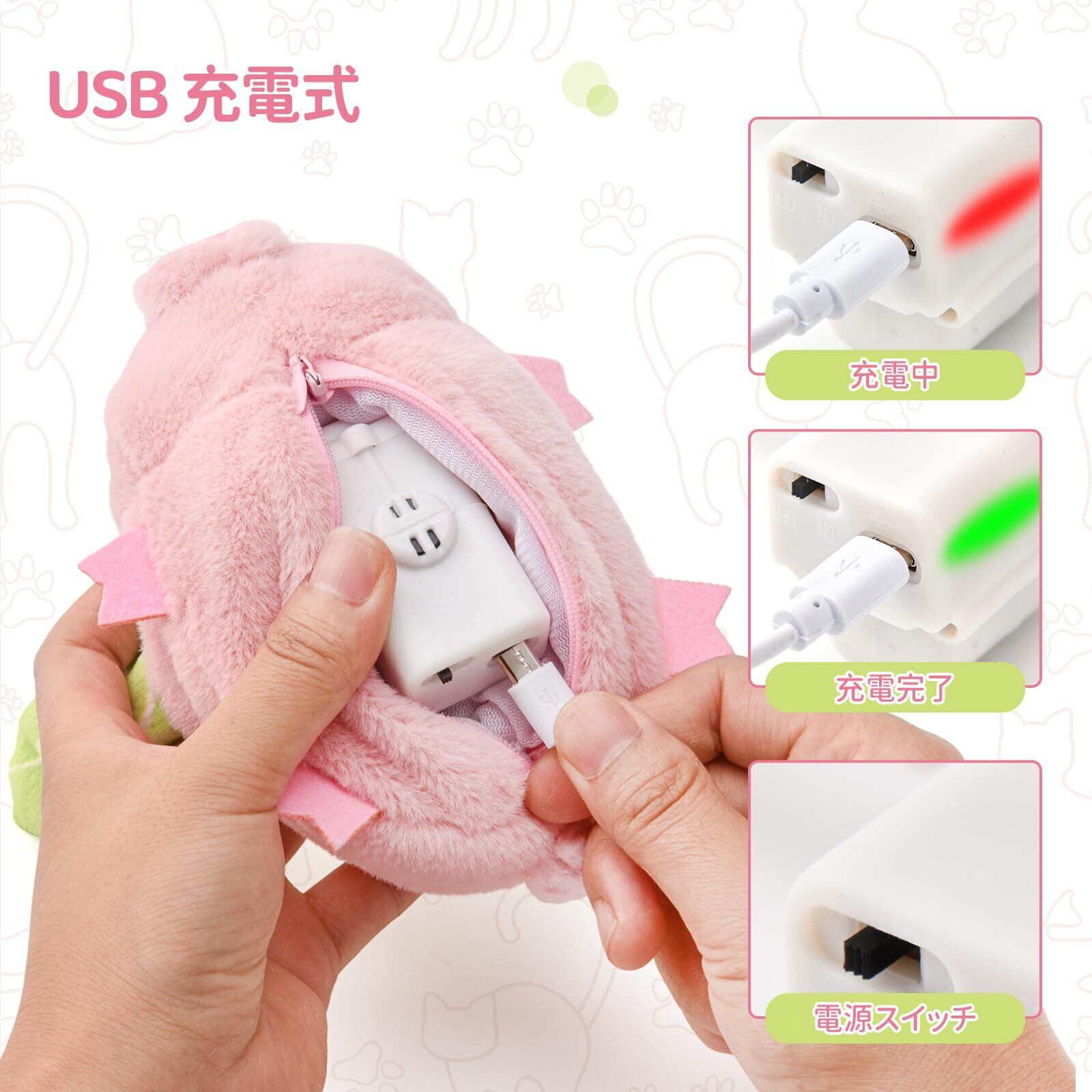 【またたび入り】おもちゃにまたたびポーチを付属します。またたびの香りで猫の興味を引き、積極的に遊んでくれます。 (注意:装置を壊す恐れがありますので、未封入のまたたびを直接玩具に入れないでください)