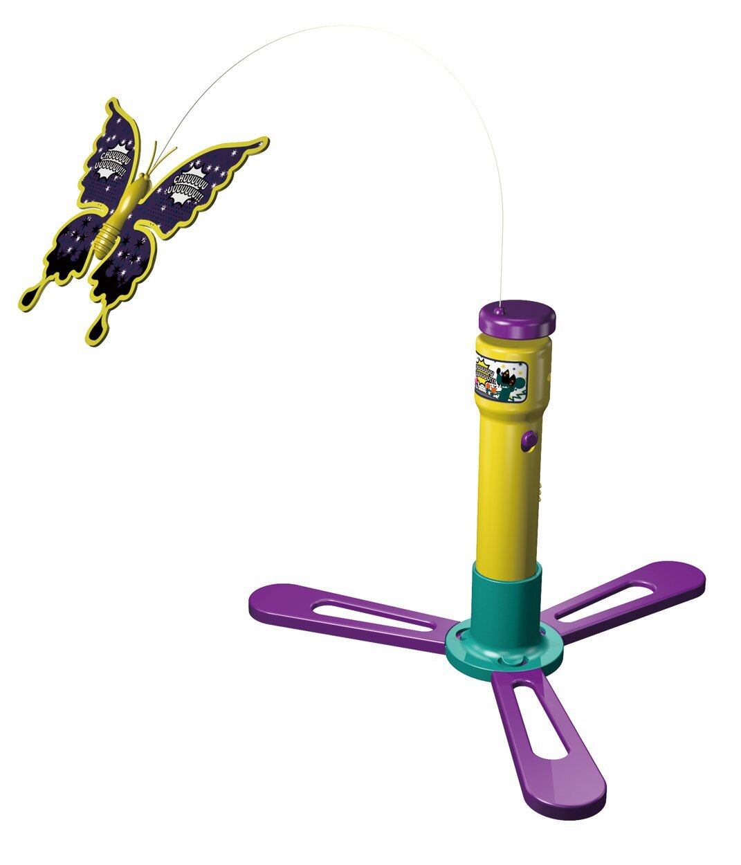 猫ちゃんの狩猟本能MAX! ! リアルな羽ばたきに猫ちゃん大興奮! バタフライが羽ばたきながらクルクル回る! 手持ちでも使える2Wayタイプ。