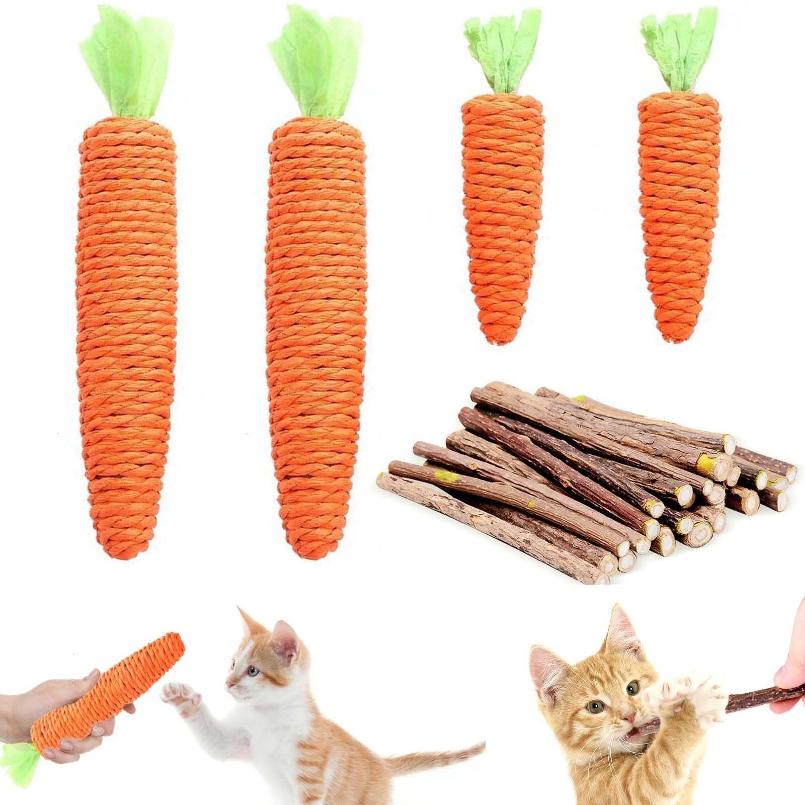 EsiFare 猫のおもちや 猫歯ぎしり棒 猫 玩具 おもちゃ ストレス解消 噛むおもちゃ 噛み癖 にんじんおもちゃ 4本入り 一人遊び 猫歯磨きまたたび 運動不足対策 肥満解消 猫のおもちゃ 安全(人参玩具*4本、歯ぎしり棒*32本)