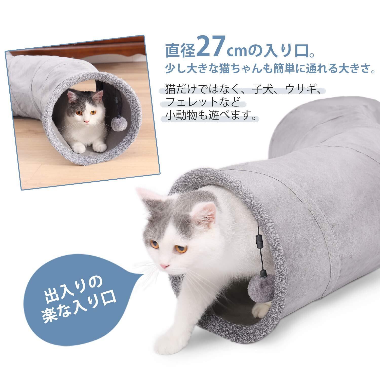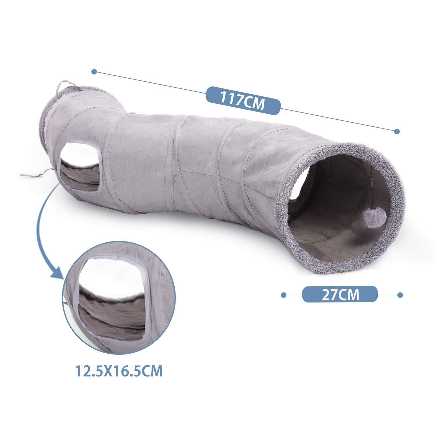 PAWZ Road 猫 トンネル キャットトンネル おもちゃ スエード製 ウサギ 小動物 頑丈 丈夫 玩具 一人遊び 運動不足解消 人気 キャットトイ ペット玩具 猫遊び ペット用品 - グレー S字型