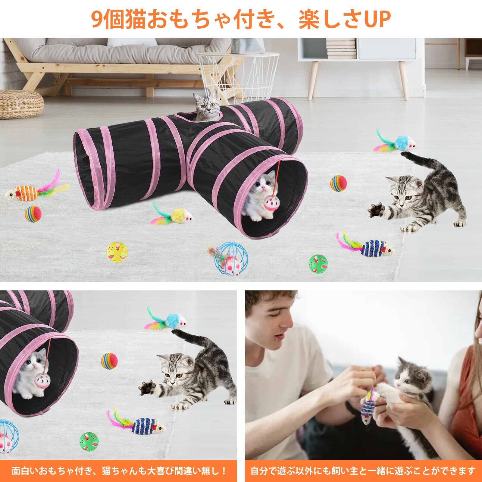 【実用的なトンネルセット】長さ83*30cm、直径25cm、4穴。 猫が振り返る余地が十分にあり、猫の運動を促し、猫が何時間もの遊びと楽しみを楽しむことができます。猫だけでなく、子犬、うさぎ、ェレットなど小型ペットも利用できます。また、猫のトンネルといろいろなおもしろいおもちゃの使用は、猫が家具を噛むなどの行為を減らし、室内環境を保護することもできます。10点セットの遊べるおもちゃで非常に経済的で実用的なトンネルセットです。