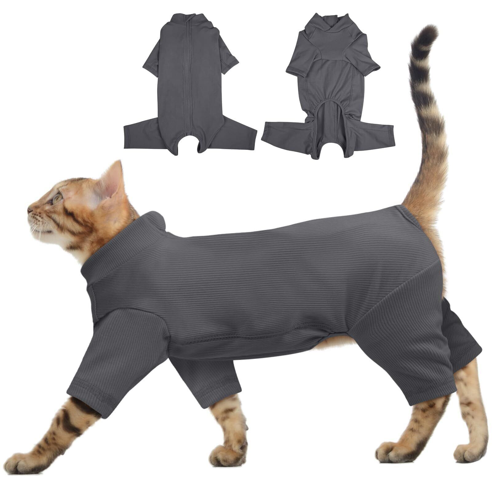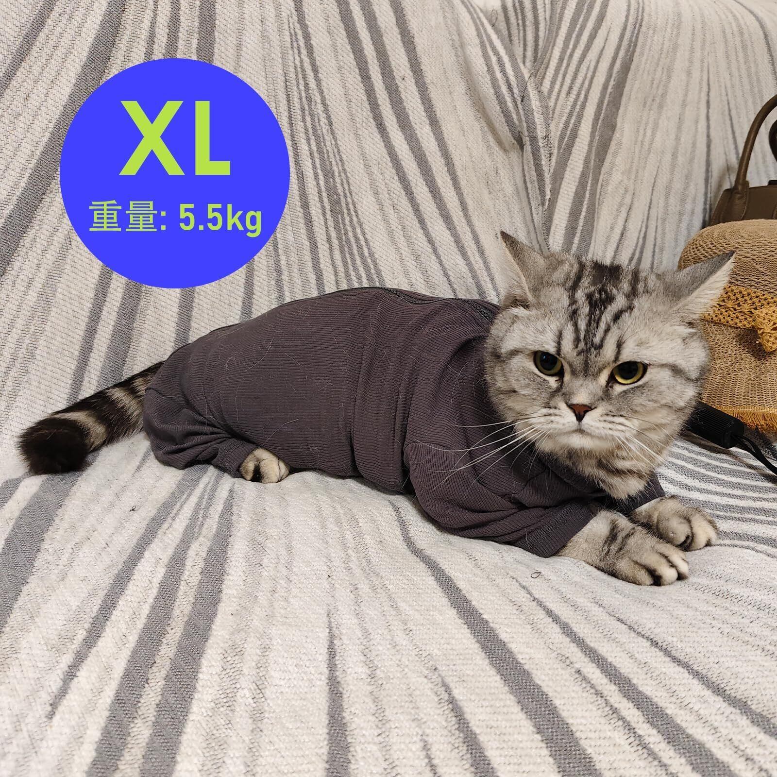 DENTRUN猫 服 猫用 ロンパース パジャマ 猫の服 引っ掻き対策 軽量 快適 柔らかく肌に優しい 四つ足 ペット服 皮膚保護 通気性 通年着(グレー, XS)