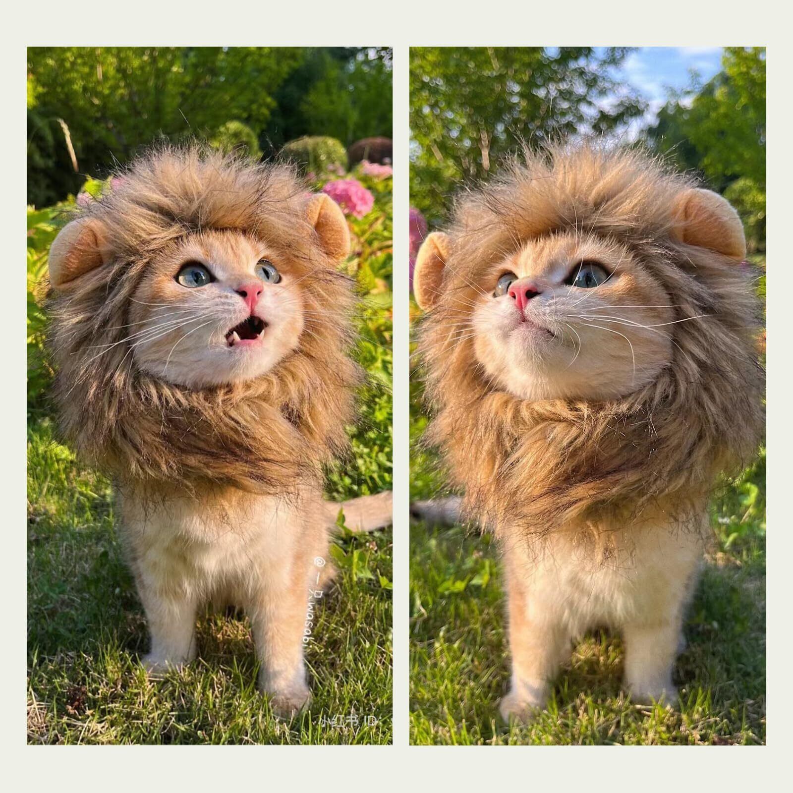 Haorange 猫被り物 猫ライオンのコスチューム 猫用ウィッグ 小型犬 中型犬 ペット用帽子 耳付き 飾り 猫用コスプレキャップ ライオン ウィッグ (M)