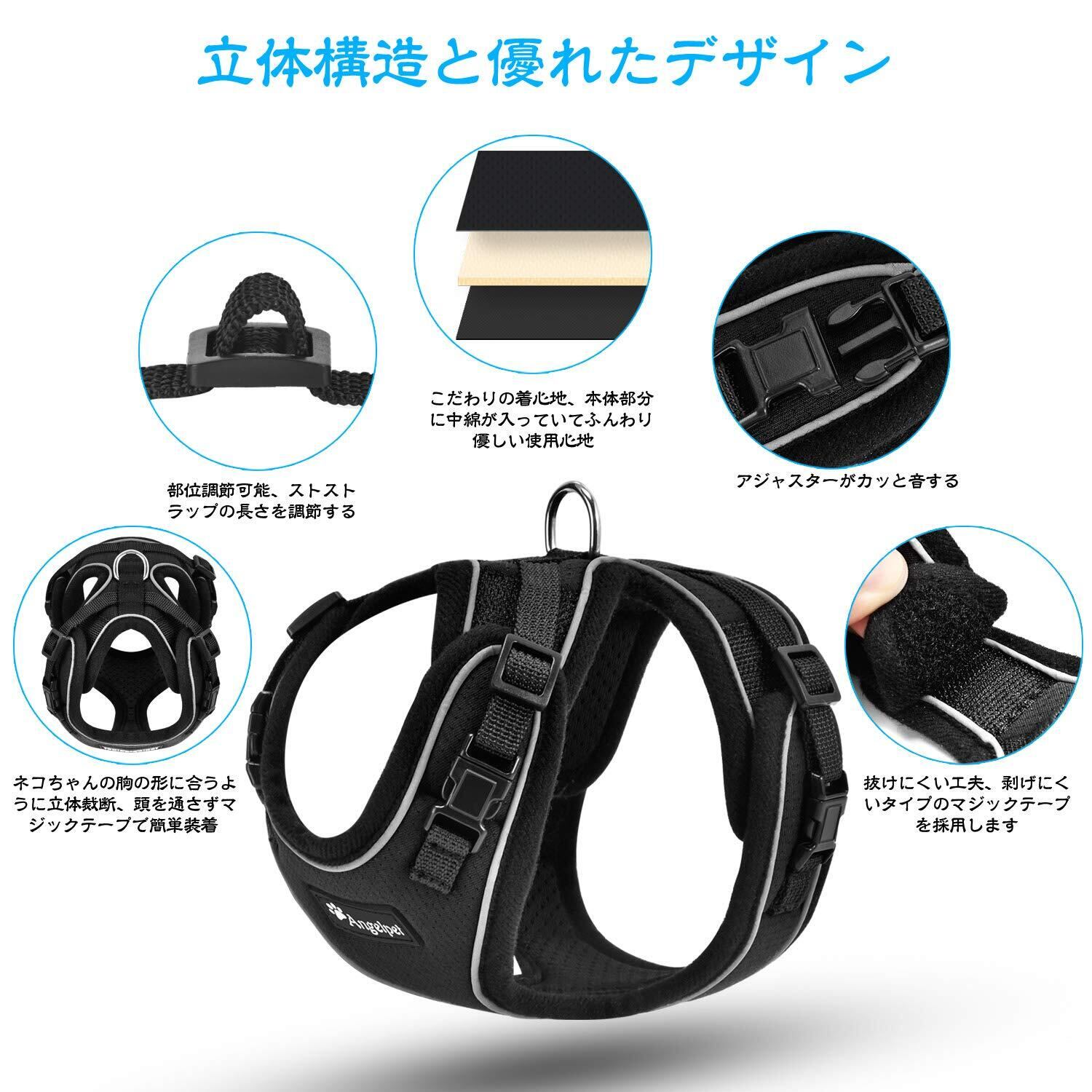 猫 猫用 ハーネス 胴輪 猫具 ねこ ネコ 子猫 子犬 小型犬 散歩 お出かけ 抜けない ベスト ソフト胸あて 軽量 頭を通さずマジックテープで装着 サイズ調節可 夜反射 通気メッシュ (Sサイズ (x 1), ブラック)