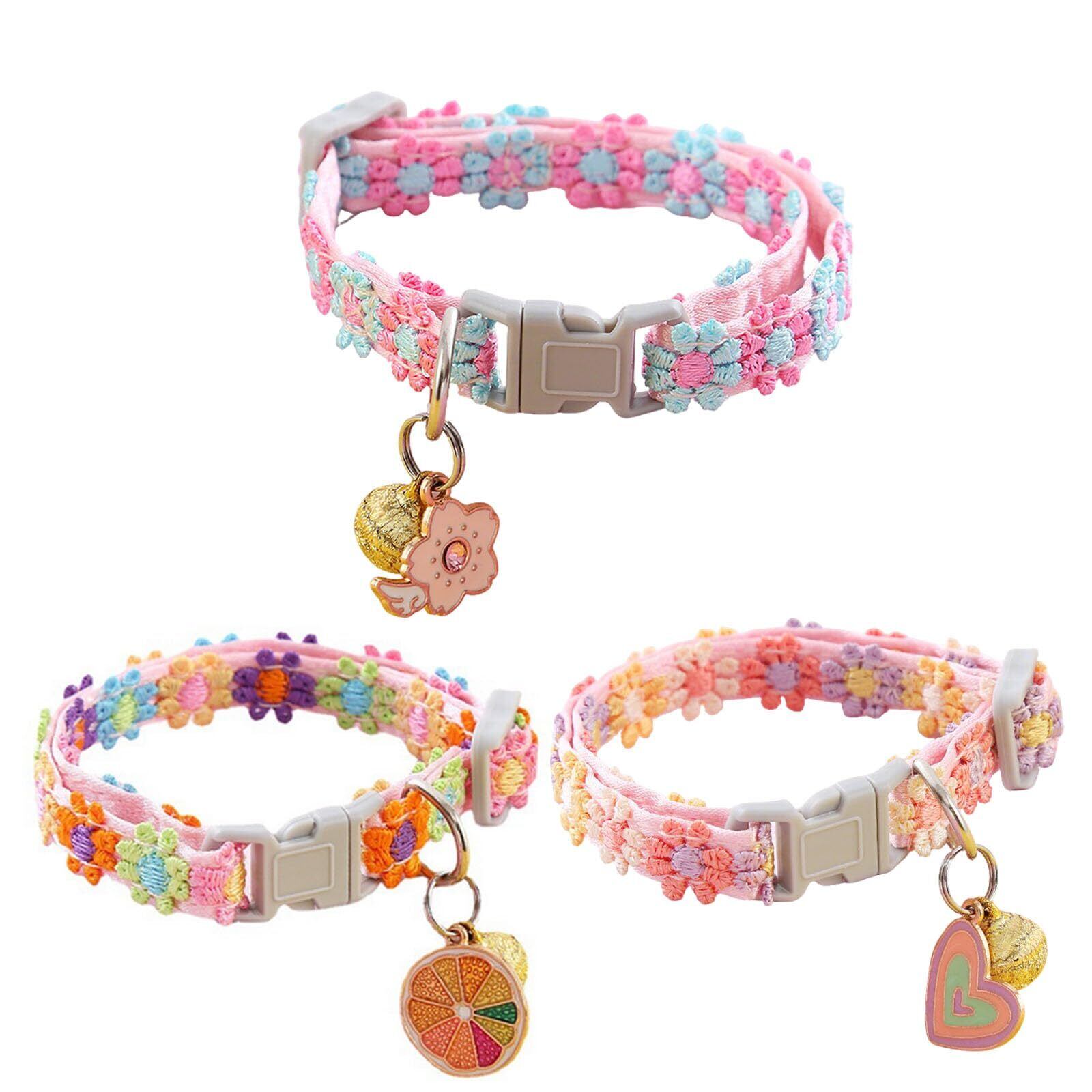 LOYELEY 猫首輪 3個セット 子犬首輪 可愛い首飾り 猫くびわ セーフティバックル付 猫くびわ セーフティバックル付 サイズ調節可 超軽量 柔らかい ペット首輪
