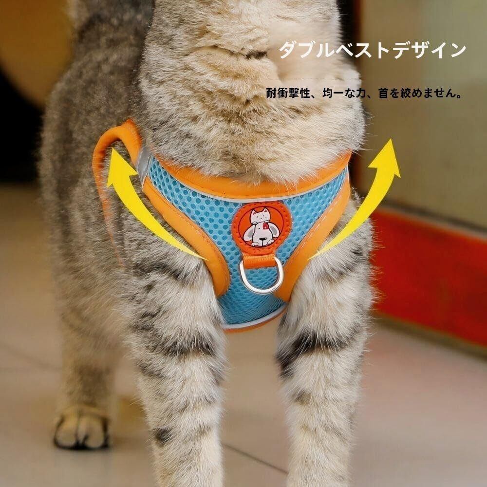猫ストラップ牽引ロープセット通気メッシュ夜反射縞付き猫体輪猫散歩軽量通気素材猫用犬用 (S)
