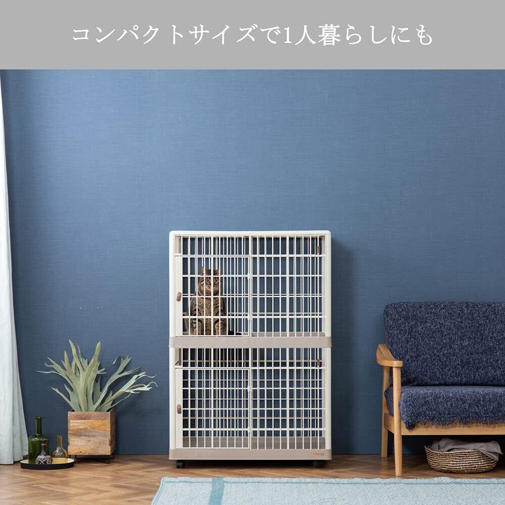 サビない、手入れが簡単、軽い等プラスチック製の良さを活かしたネコに最適な2段タイプのケージです。ペットの出し入れがしやすいよう、天板と側面に扉を付けました。移動に便利なキャスター付きです。