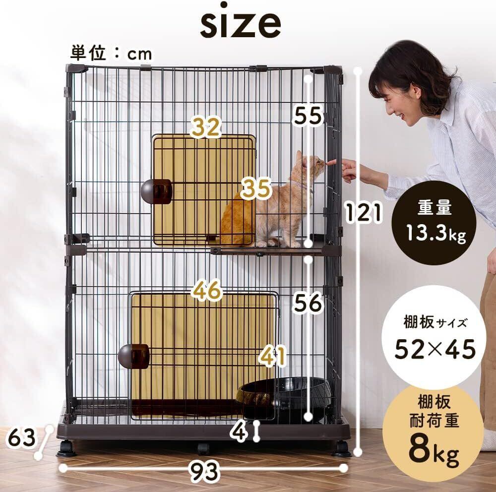 アイリスオーヤマ 猫 ケージ 2段 キャスター付・簡単組み立て PEC-902V ライトナチュラル