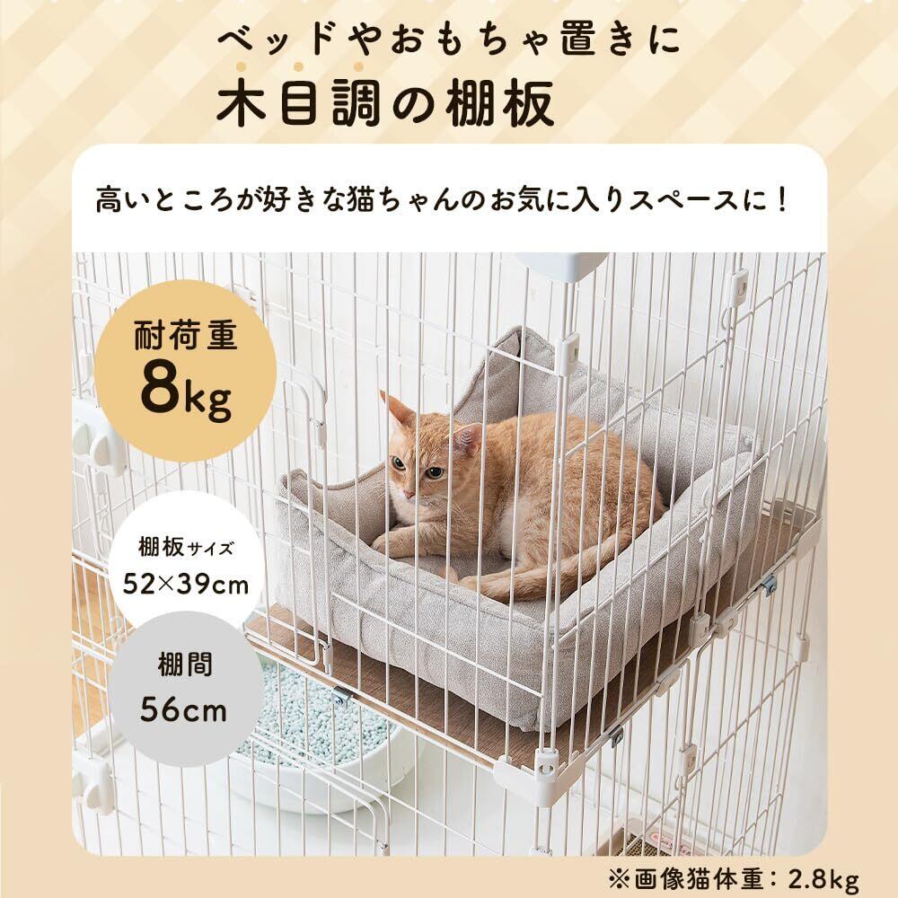 アイリスオーヤマ(IRIS OHYAMA) キャットケージ 2段 キャスター付・簡単組み立て PEC-902V ライトナチュラル