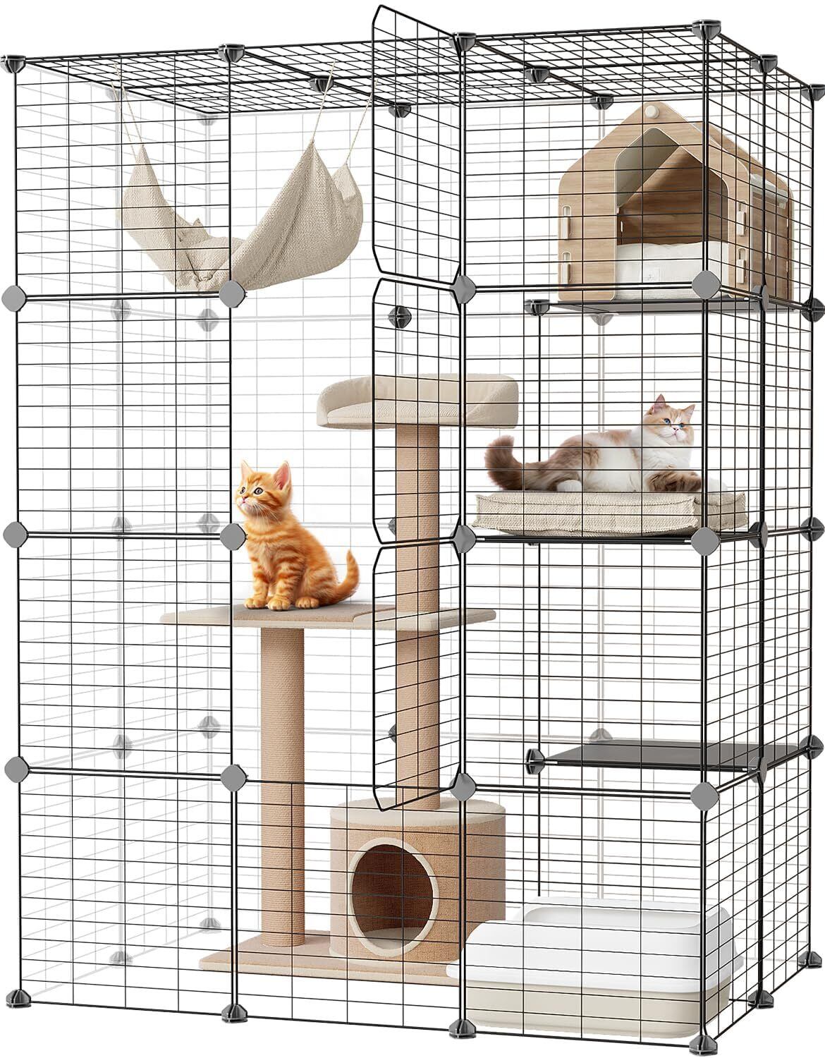 Topzoo 猫 ケージ 大型 3段 多頭飼い キャットケージ 大型猫 猫用ケージ 広い 組立簡単 組替え自由 おしゃれ キャットケージ 大きい 足場 ワイド 増やせる 脱走防止 室内飼い 日本語説明書付き 幅105×奥行き70×高さ140cm ブラック