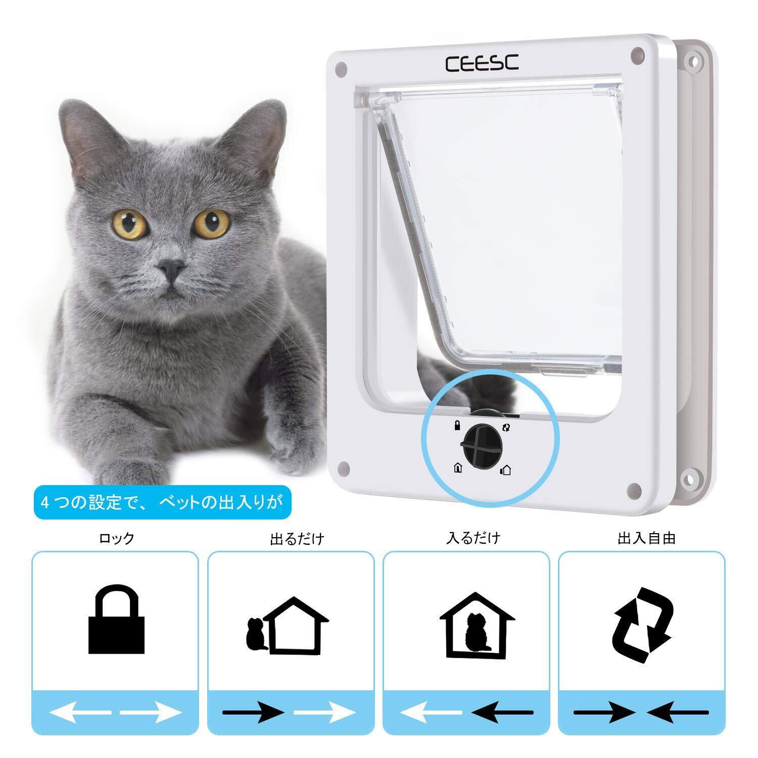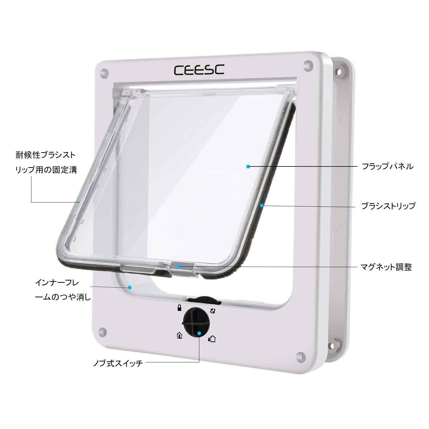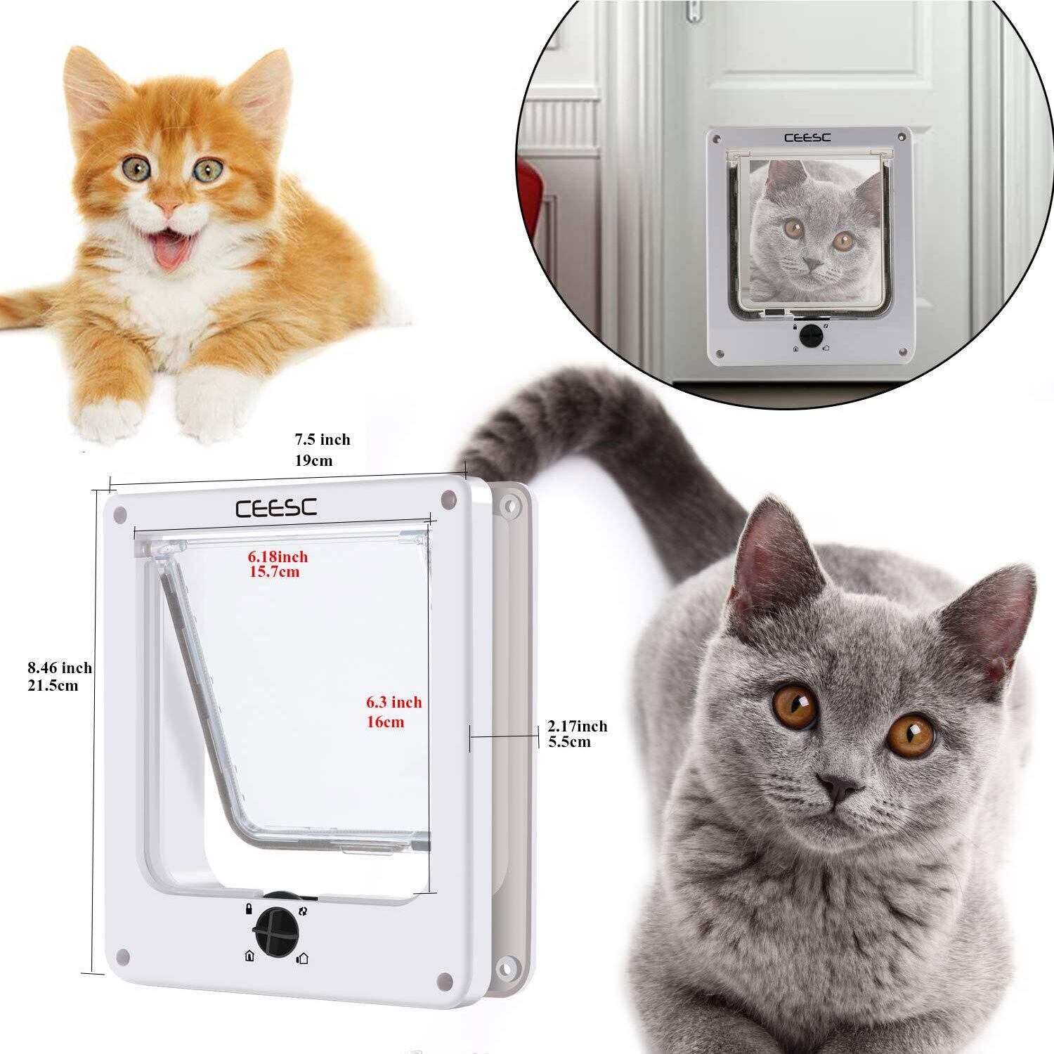 CEESC [バージョンアップ]中キャットドア、室内外装ドア用4ウェイロックキャットフラップドア、キャッツ&ドギー用耐候性ペットドア(ホワイト、M)