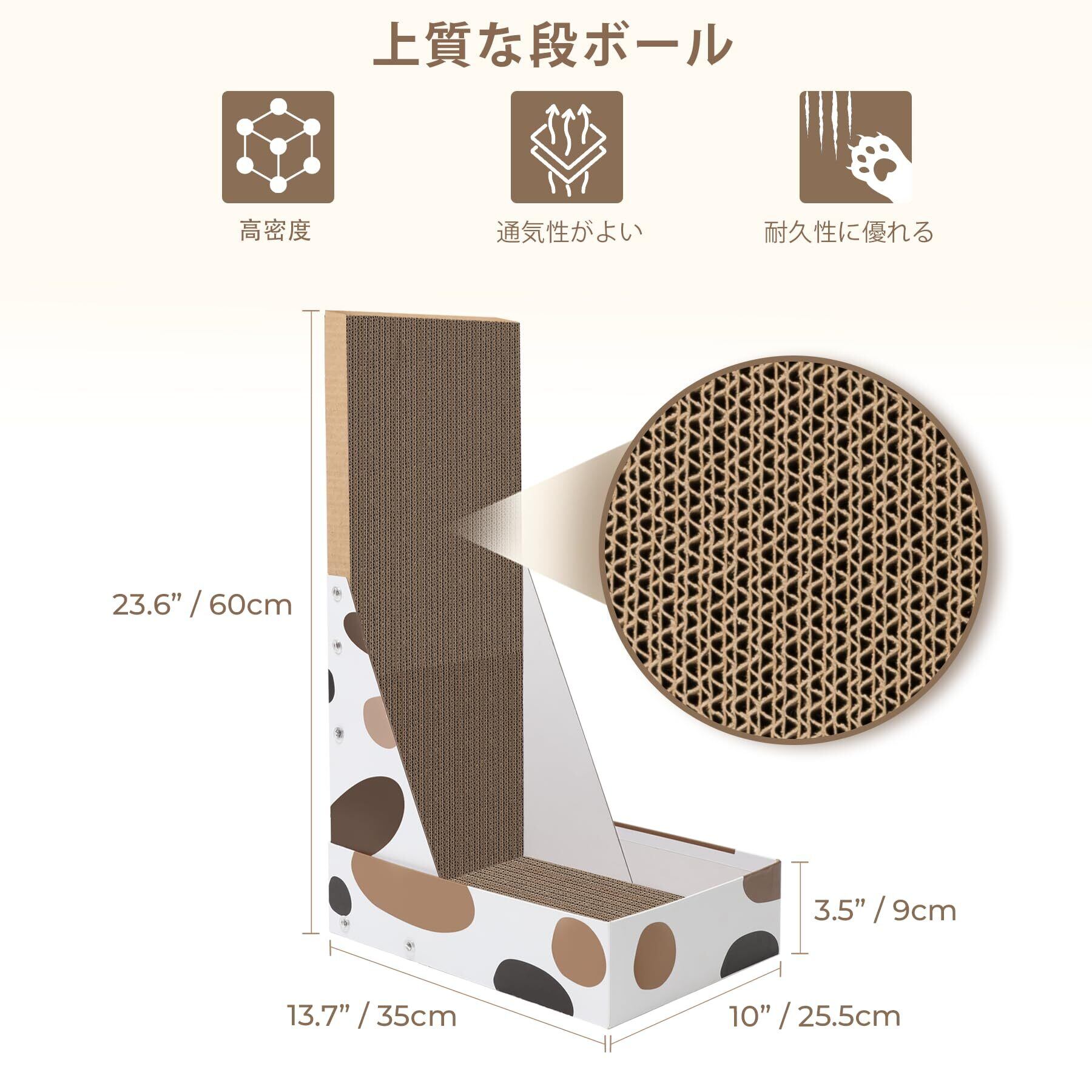 「製品仕様」L字型25.5*35*60cm(縦*横*高さ)。パッケージには耐久性のある両面使える猫爪研ぎが三枚含まれています。ネジも付いており、組み立てが簡単で、子猫や成猫までに使用することができます。