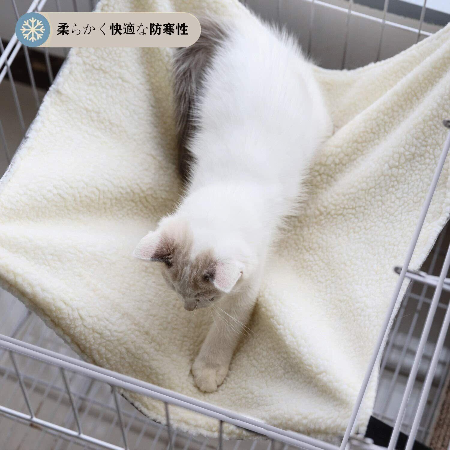 【通気性良い】:ハンモックの両面とも使用できます。一面は優れたズック生地で、通気に優れています。夏にも蒸し厚くならなとても涼しいです。もう一面はカシミヤ素材で柔らかい、秋冬の時、猫ちゃんは寒いと感じる場合に防寒して肌触りもよいです。猫ちゃんに快適な休み環境に創造できます。 お買い求めいただいた商品に初期不良等問題があった場合、交換※もしくは返品対応いたします。ご心配なく選んでください。商品に何かご不満があったら、お気軽にお問い合わせ下さい。