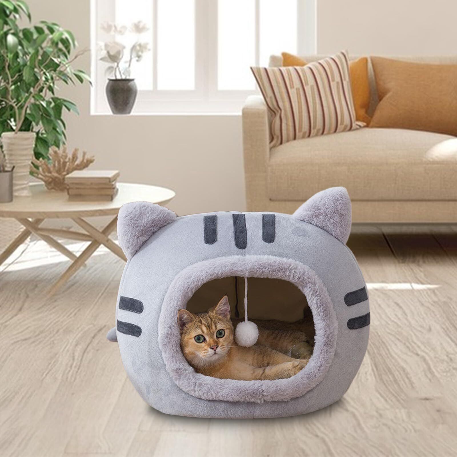 Poxvalzor 猫 犬 ベッド ハウス キャットハウス ドーム 猫ベッド 寒さ対策 ペットベッド 洗える 猫用こたつ あったかグッズ 室内用 ペット ペット用品 通販 (グレー, S-35*35*30cm)