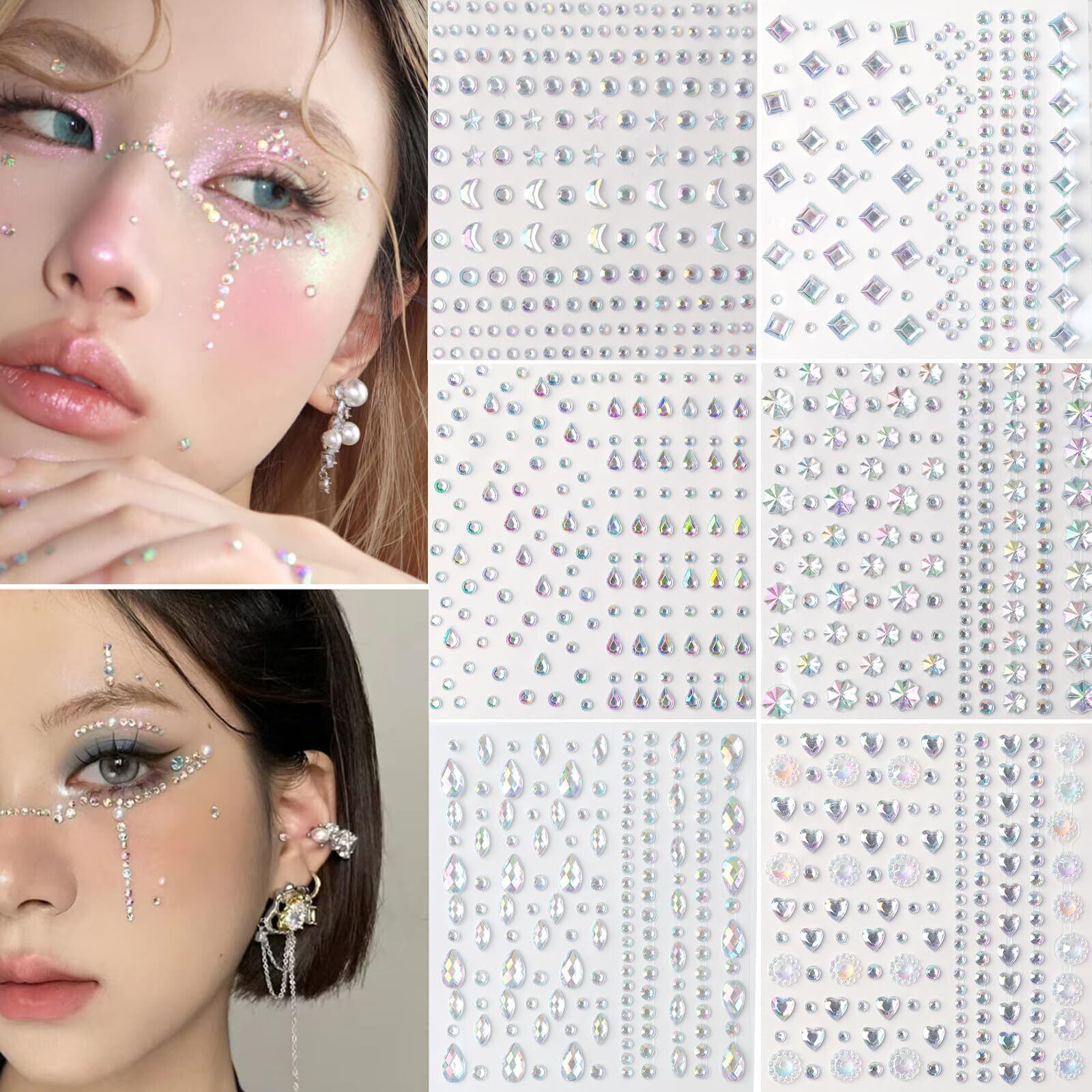 高品質:フェイスグリッターステッカーは、高品質の樹脂で作られたクリスタルで、透明で輝いています。白く、純粋で透明で、さまざまなサイズが用意されており、小さいものから大きいものまで自由に貼り付けることができます。無害で無毒なので、肌に優しいです。フェイスシールは、顔、体、ネイルに安全に使用できます。想像力豊かなDIY形状を作り出しましょう