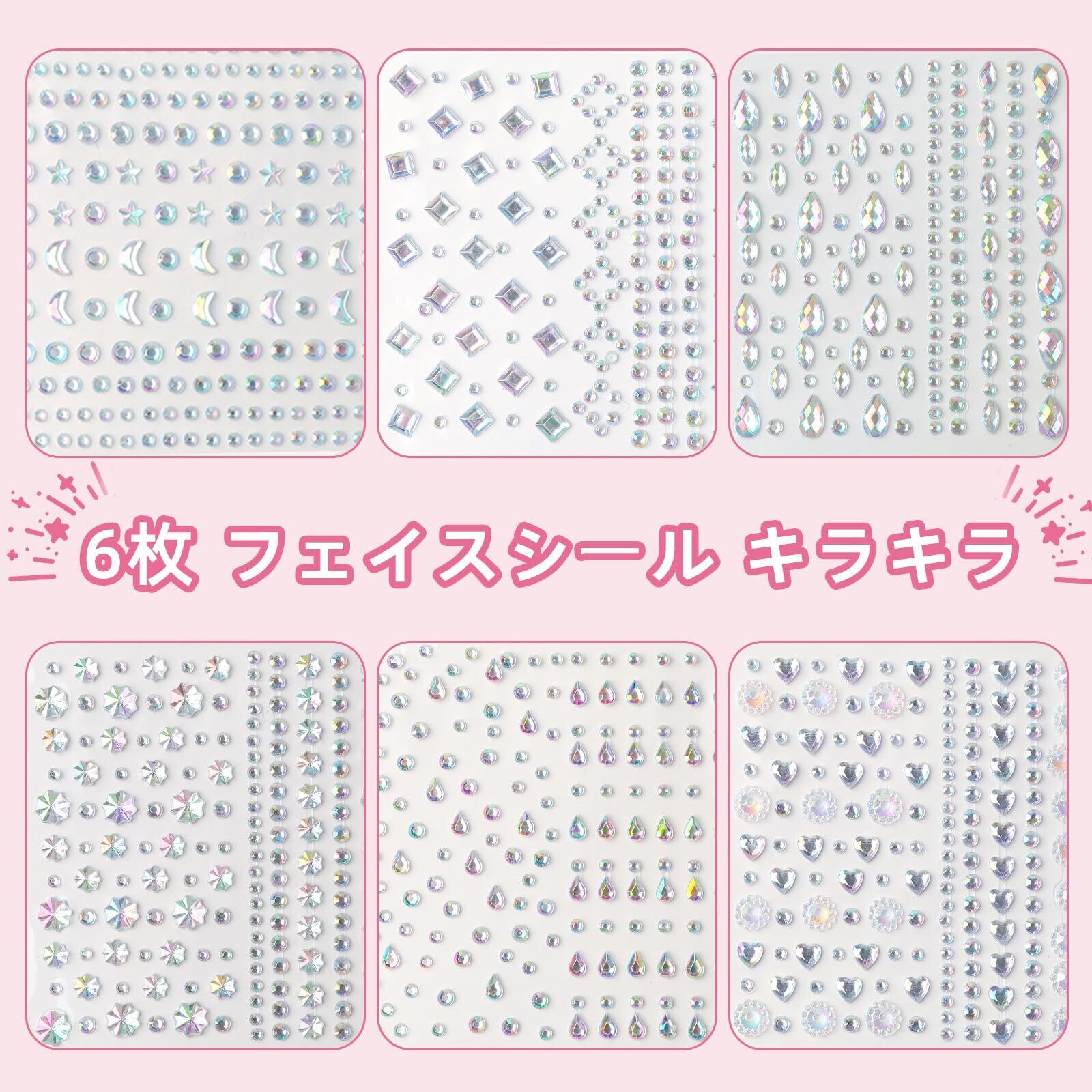 フェイスシール キラキラ 3D 光る 6枚 顔 カラフルなフェイスステッカー、ストーン、フェイスステッカー、メイク ストーン、ネイルパーツ ストーン DIY用品 自己吸着式で接着剤不要 貼り付け可能 キラキラ カラフル