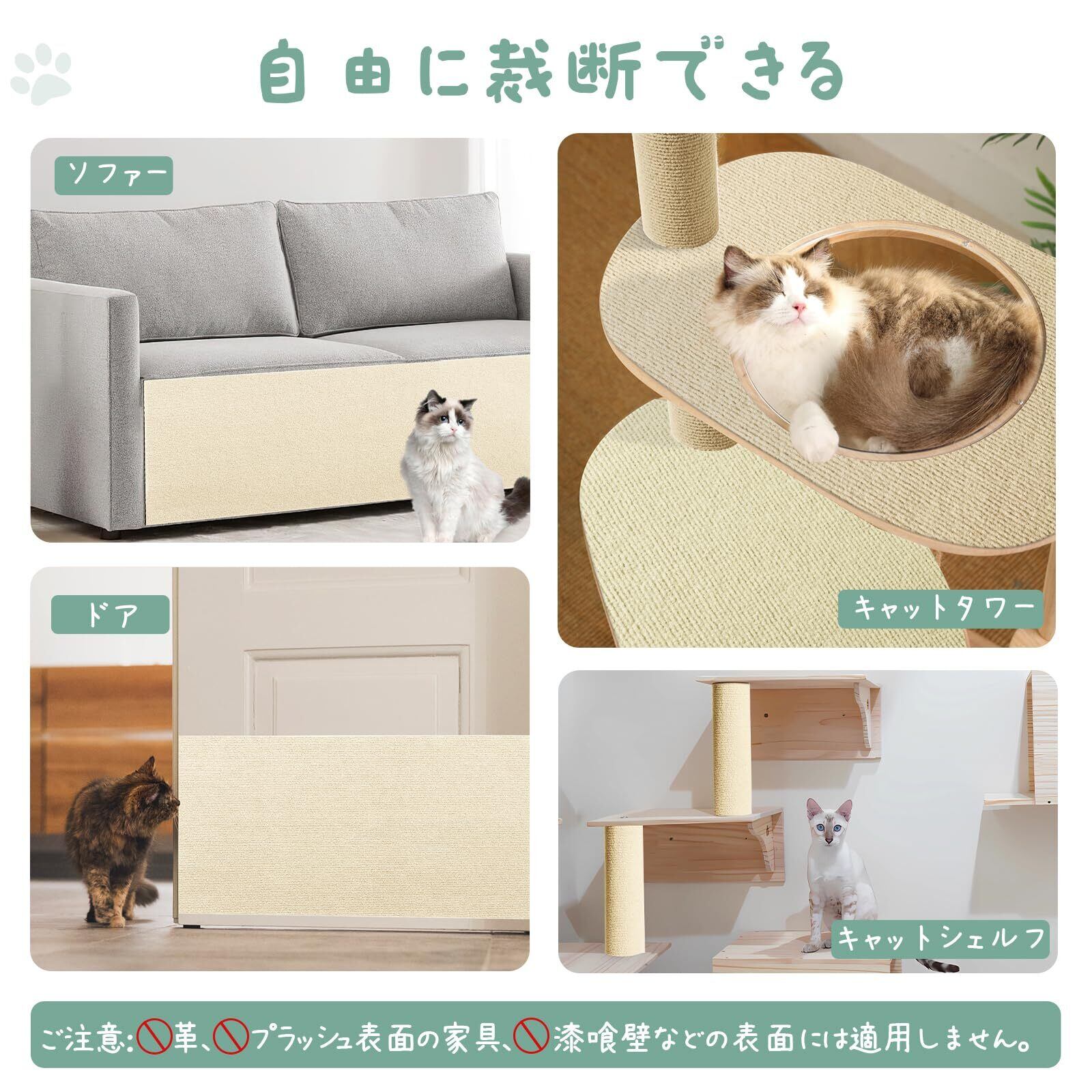 「多種の場所に適用」 自由にカットできるため、本製品は様々の場所に使用できます。例えば壁、布/木製ソファー、戸棚、タンスなどネコちゃんが爪とぎしがちな場所に適用します。更に、キャットタワーなどのリペアにも使えます。ご注意:革、ベルベット、マイクロファイバーの表面、または特殊塗装加工された表面には適用しません。