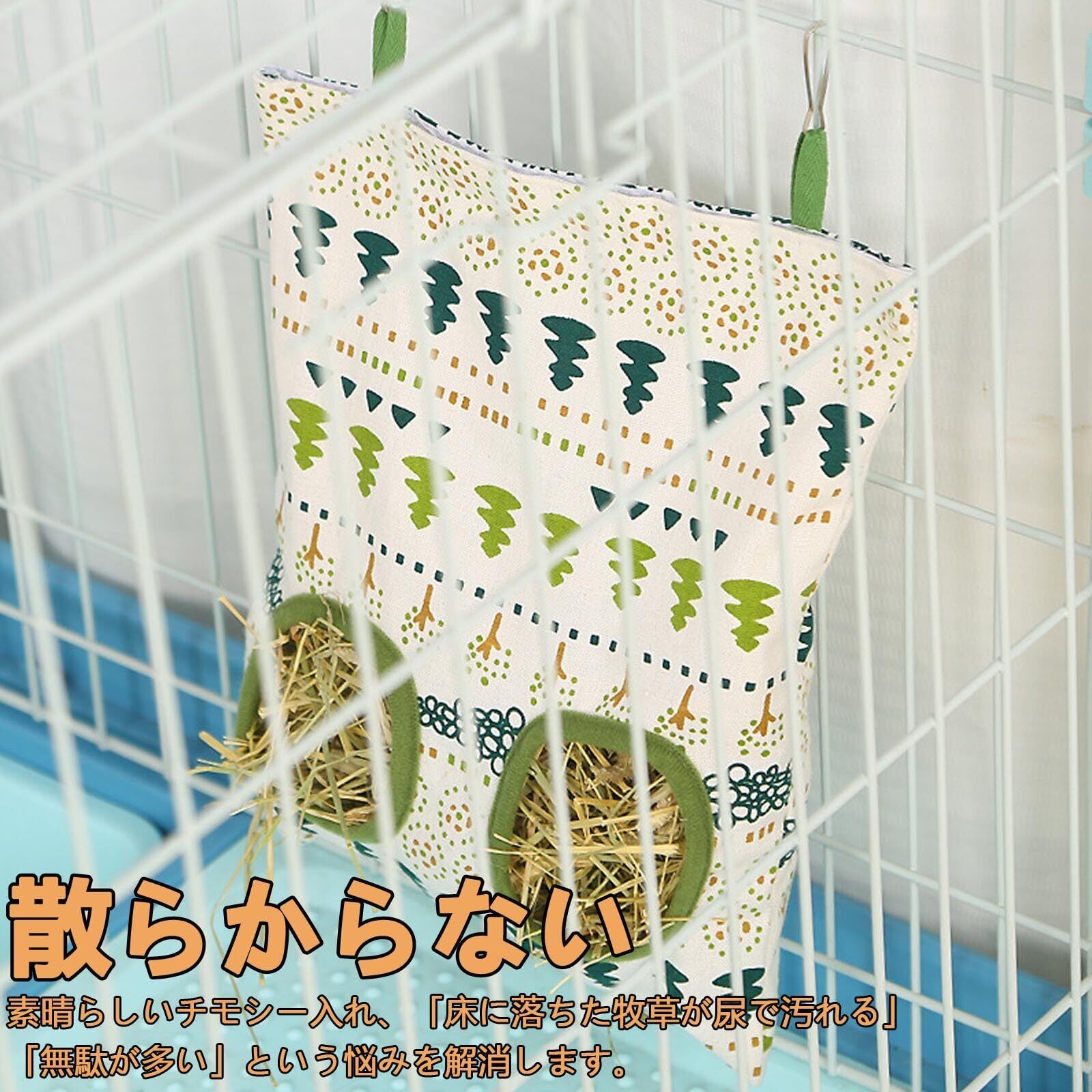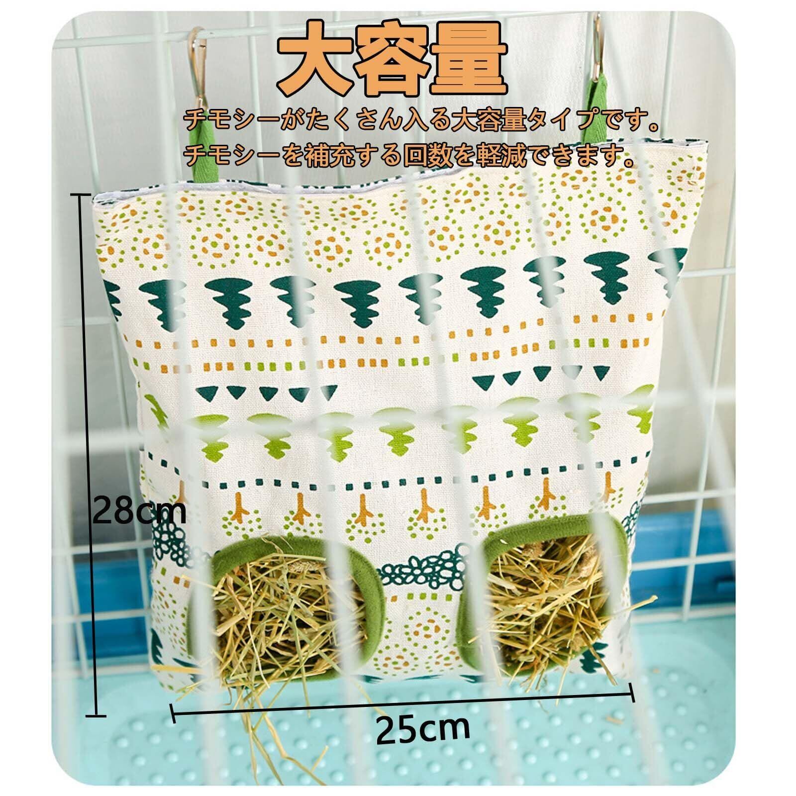 Ifukens チモシー入れ うさぎ 牧草入れ 餌入れ ケージ用えさ入れ 牧草フィーダー 吊り下げ式バッグ大容量 散らからない デグー チンチラ モルモット チモシー 干し草袋 小動物用食器 ペット用品(2つの穴-S:25*28cm)