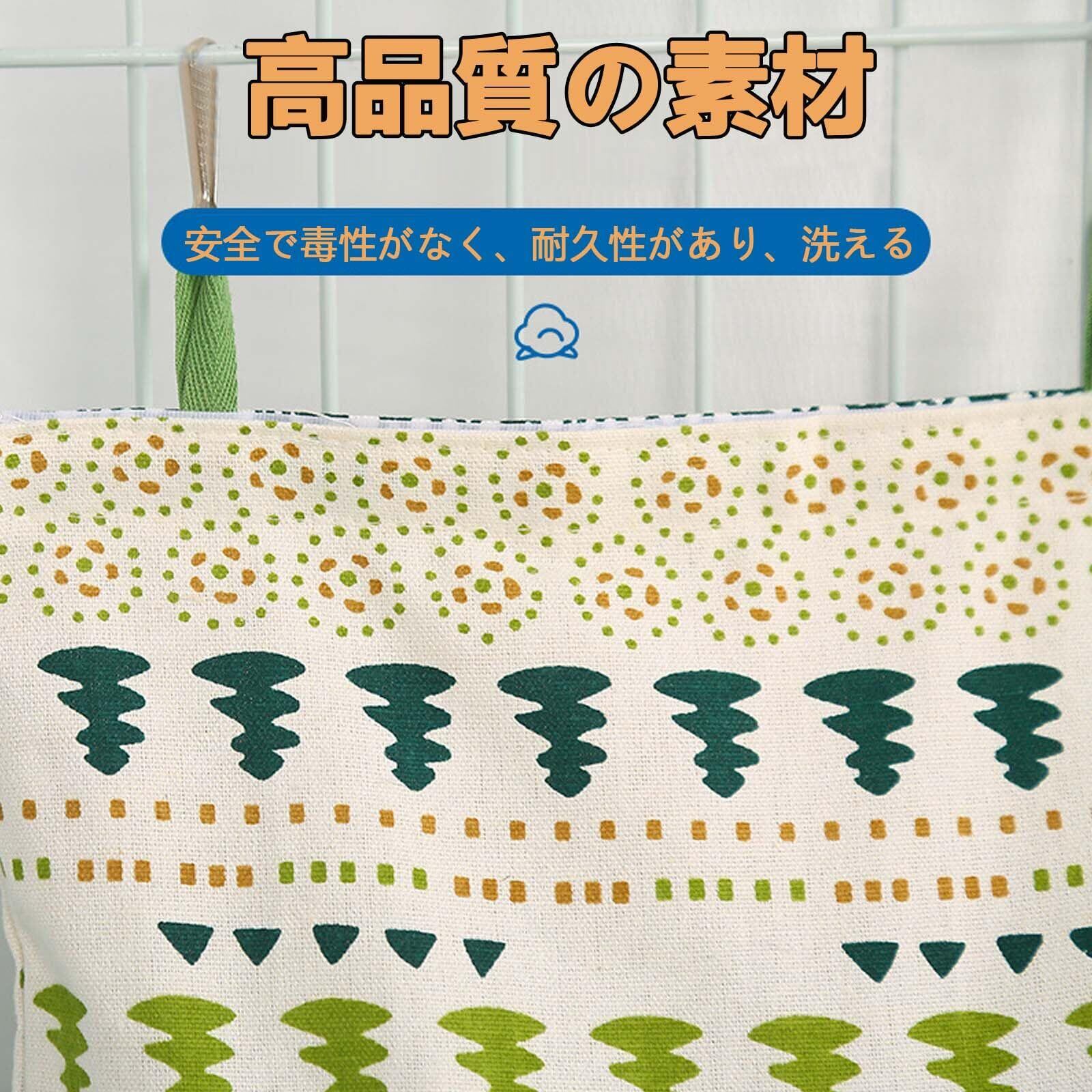 【超耐久・耐噛み素材】布タイプは安全で毒性がなく、耐久性があり、洗えるOKで衛生面も安心。見た目も可愛いし、デザインおしゃれで可愛くケージに馴染みました。かわいいのはもちろん、牧草も入れやすく使いやすいです。