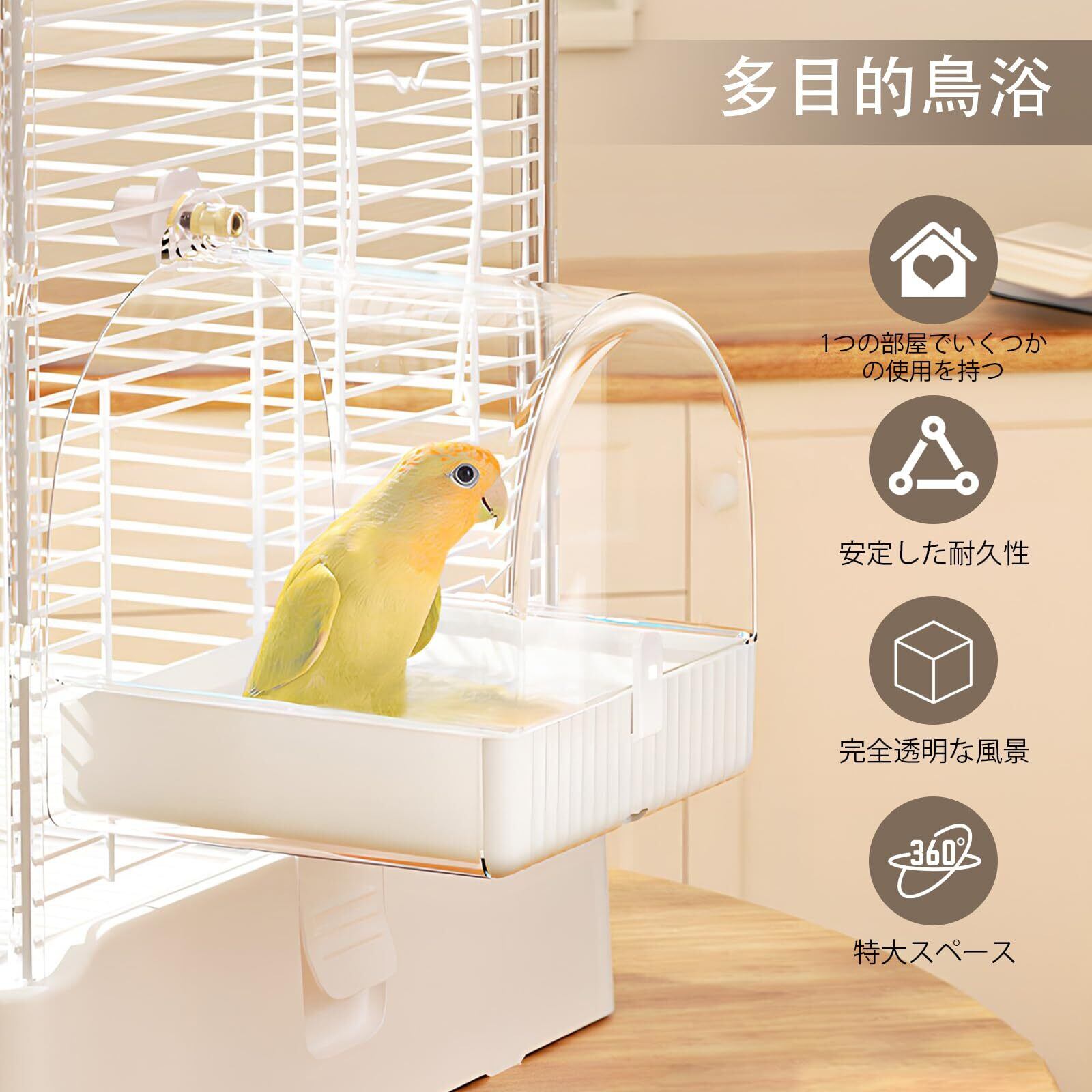 オカメインコのバードバスバードバス インコ 水浴び 鳥 水浴び 大きいサイズ 鳥かごアクセサリ 外掛式バードバス ケージ 固定 引き出し 多機能 水浴び 砂浴び エサ入れ 巣箱 簡単な取り付け 鳥用品 フィンチ、インコなどの鳥用の透明な浴槽