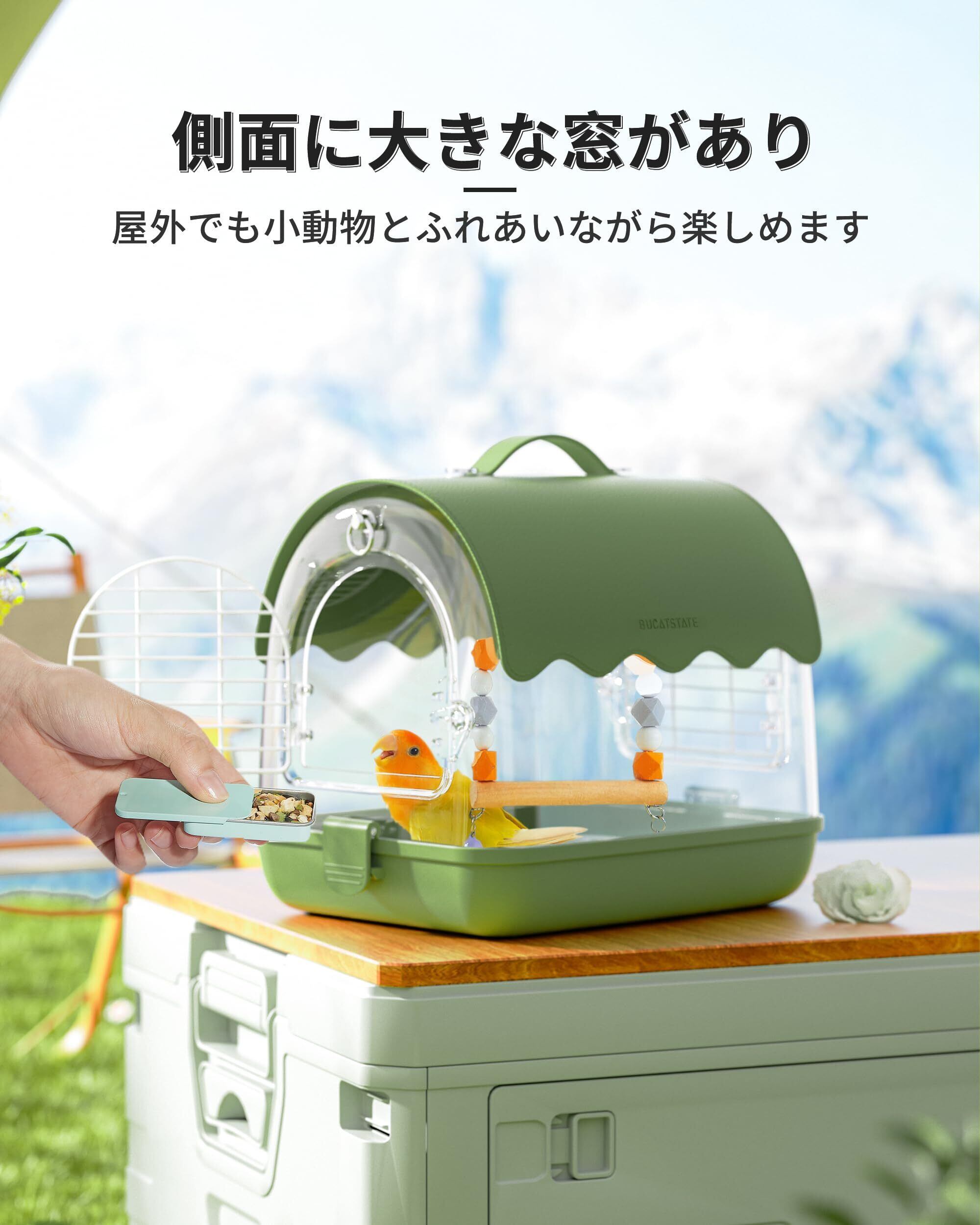 BUCATSTATE お出かけ ケージ 飼育ケージ 鳥かご バードケージ 持ち運び 通気 透明 シェード付き おしゃれ 手提げ 肩掛け 2WAYタイプ インコ、ハムスター、ハリネズミ、爬虫類など小動物用 おでかけ ケージ グリーン