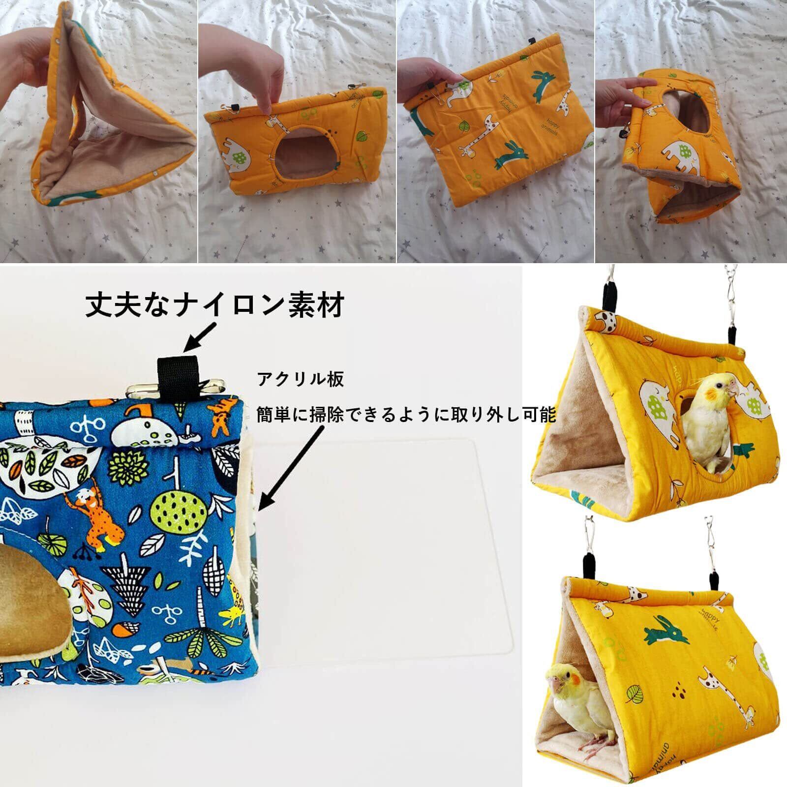 Hakona 鳥たちの寝床 三角ハウス インコ おもちゃ ハンモック ペット バードテント 鳥の巣 ペット 用 テント いんこおもちゃ かわいい 寝袋 小動物 ハウス 冬 吊り下げ 厚みふわふわ 暖かい Cave Bed 遊び場 保温 寒さ対策 鳥の おもちゃ 文鳥 鸚鵡 鳥用品 M 穴のスタイル-イエロー