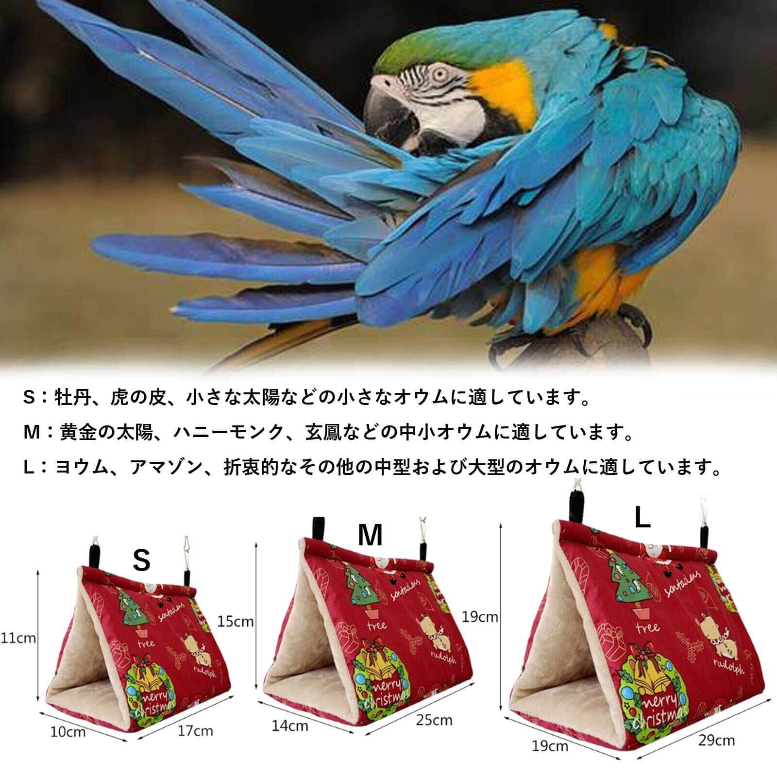 【サイズ&適用対象】S:約18x10x11cm、穴径7cm、M:約25x14x15cm、穴径9cm、L:約29x19x19cm、穴径11cm。おしゃれなクリスマスパターン、最も理想的なクリスマスプレゼント。適用対象:インコ、文鳥、子犬、オウム、ハムスター、リス、観賞用の鳥などに最適です。ご購入の前に是非ペットの体重、身長、体長をご確認ください。