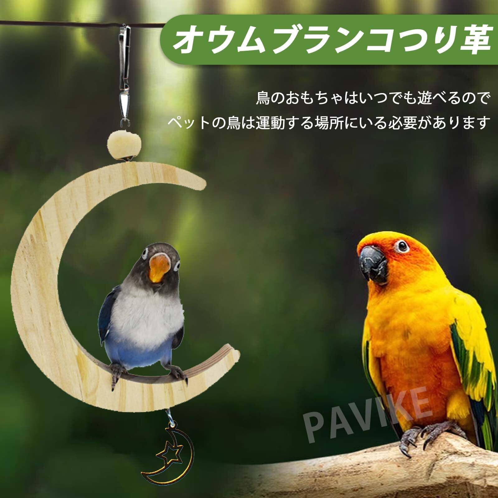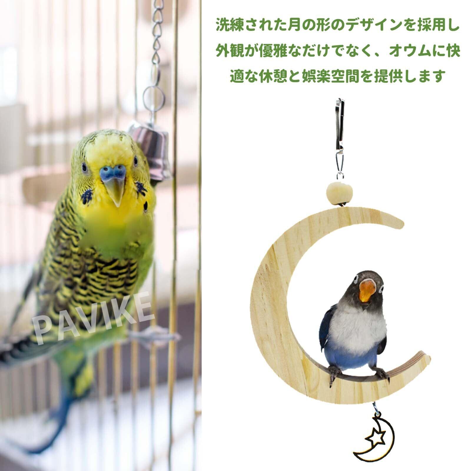 PAVIKE鳥のブランコのおもちゃ 鳥の止まり木スタンド 鳥のブランコ 鳥おもちゃ オウム用品、鳥類のよじ登る用品、月のペンダント金は、さまざまなオウムやスズメなどの退屈な気持ちを和らげるのに