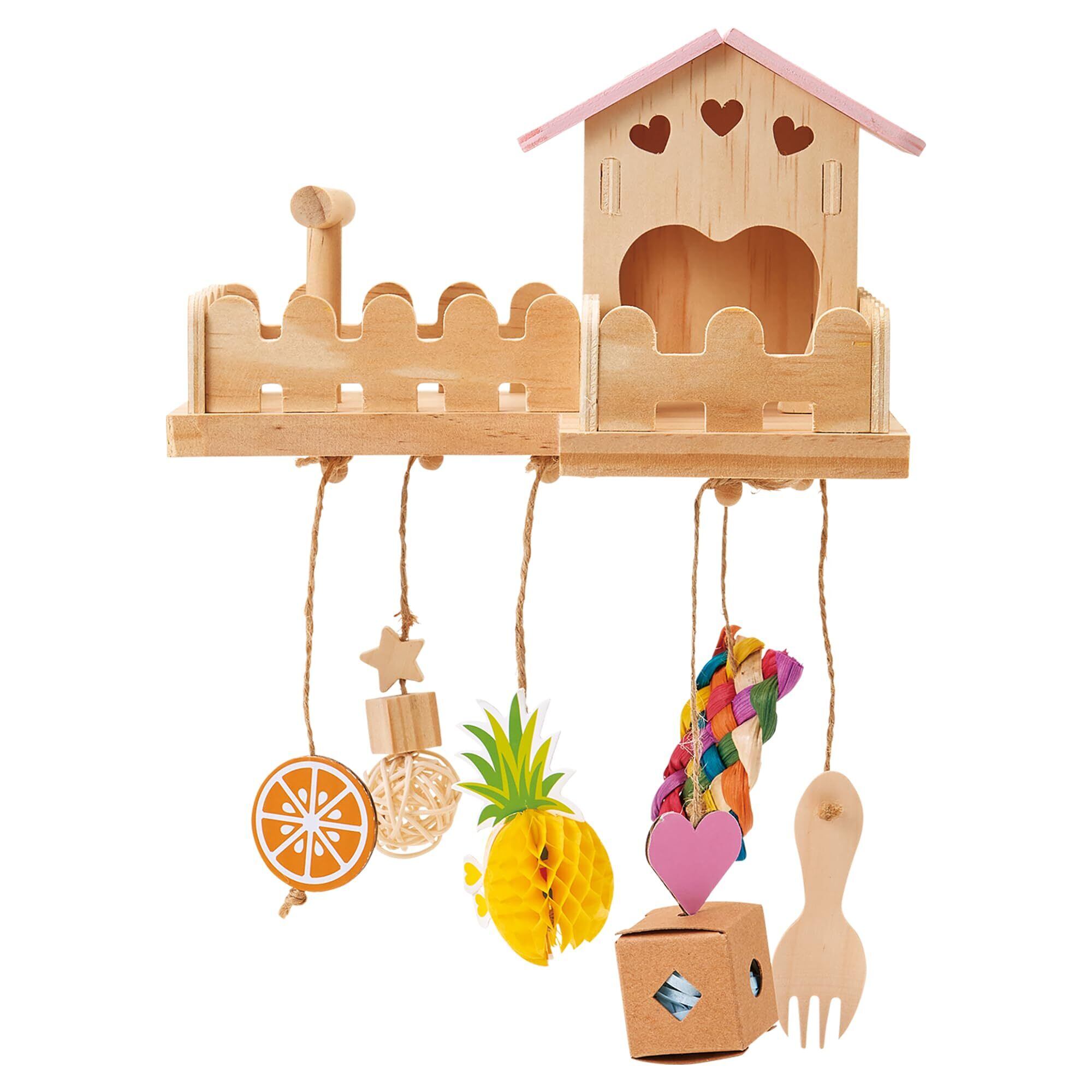 チャームを吊るして遊んだり、休憩場所に使える小鳥用のバルコニーです。