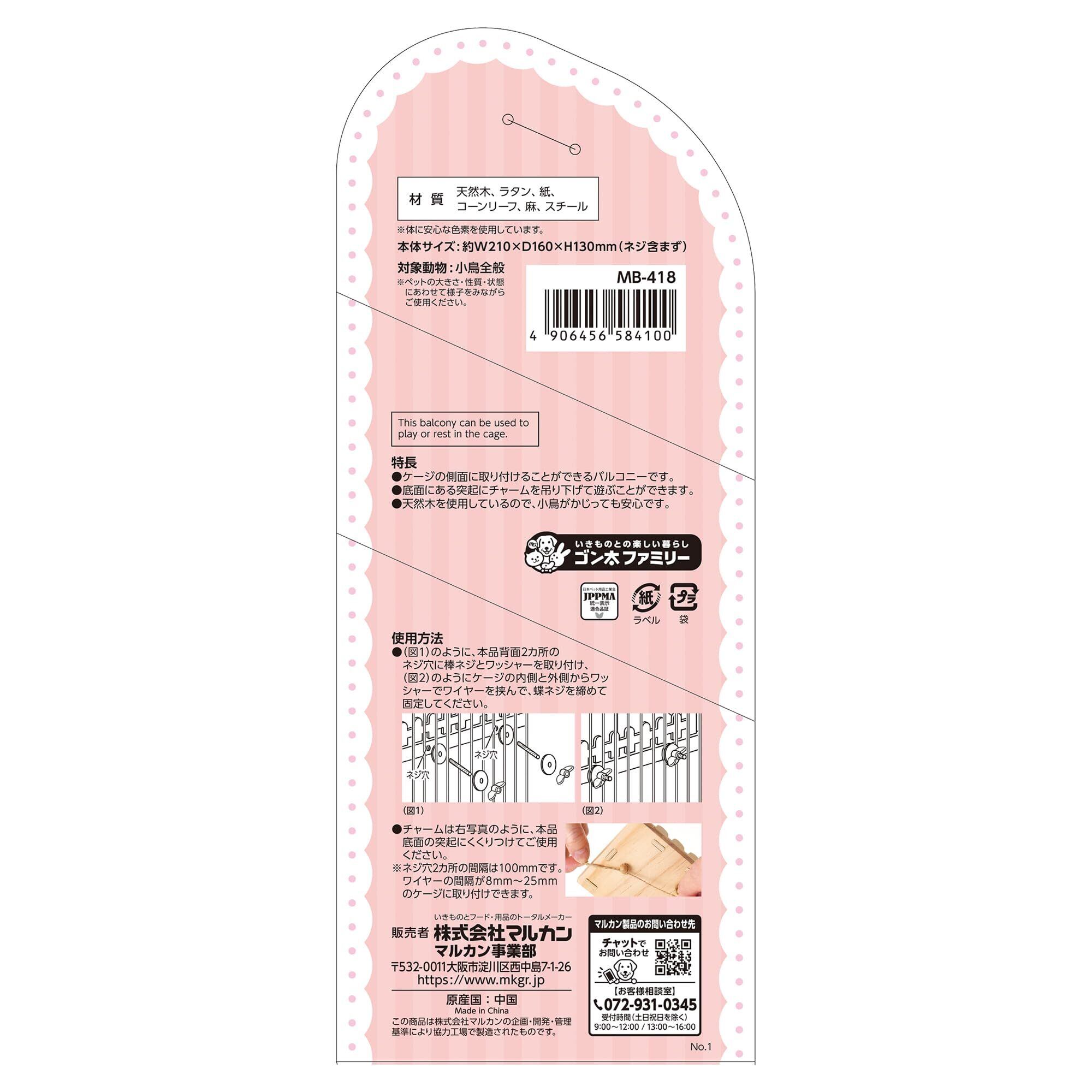 ●ケージの側面に取り付けることができるバルコニーです。●底面にある突起にチャームを吊り下げて遊ぶことができます。●天然木を使用しているので、小鳥がかじっても安心です。