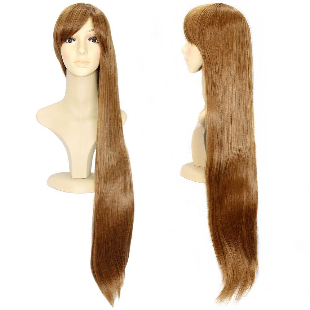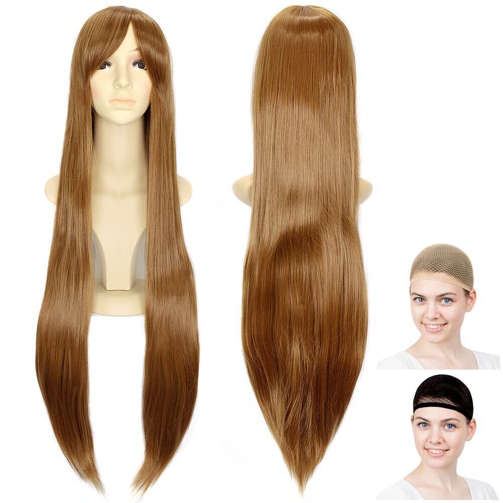 CaseEden (ケースエデン) コスプレ ウィッグ ストレート ロング 100cm ブラウン 茶色 ホワイトメルチェ・ウィッグネット2個セット (ブラウン)