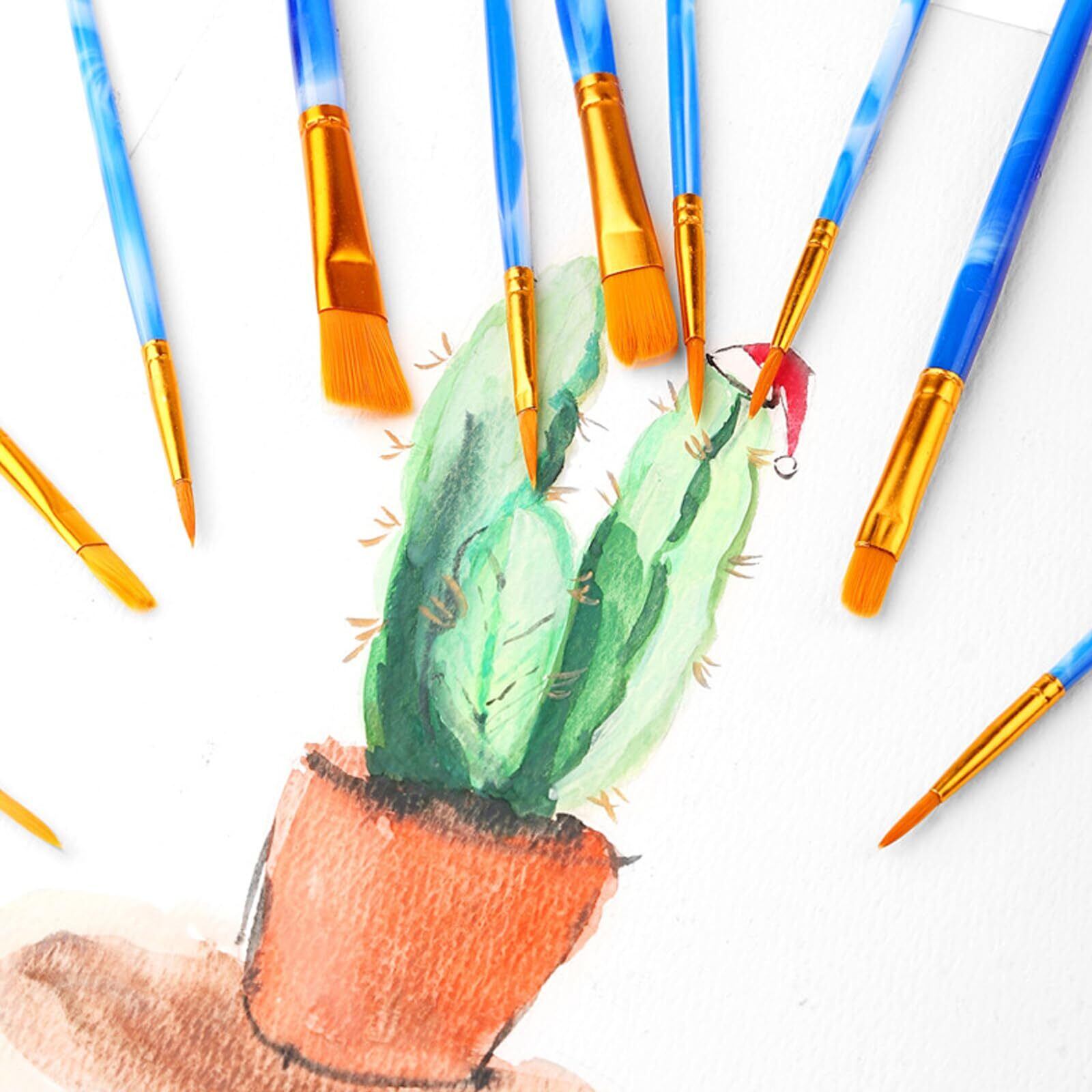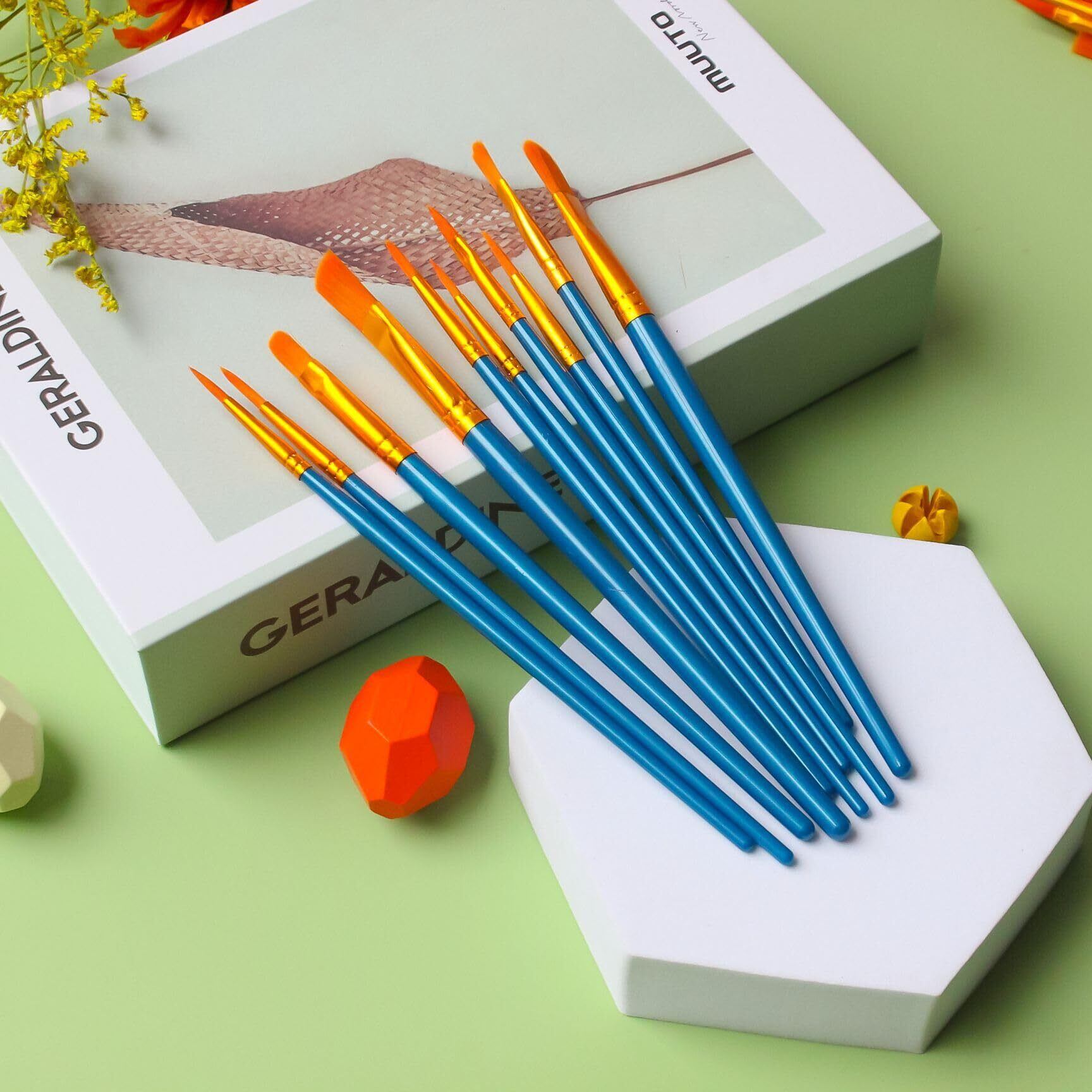 【10サイズのアートブラシ】10種類のペイントブラシ、丸い先のとがった先端ブラシ、さまざまなスタイルと効果のフラットブラシが含まれています。