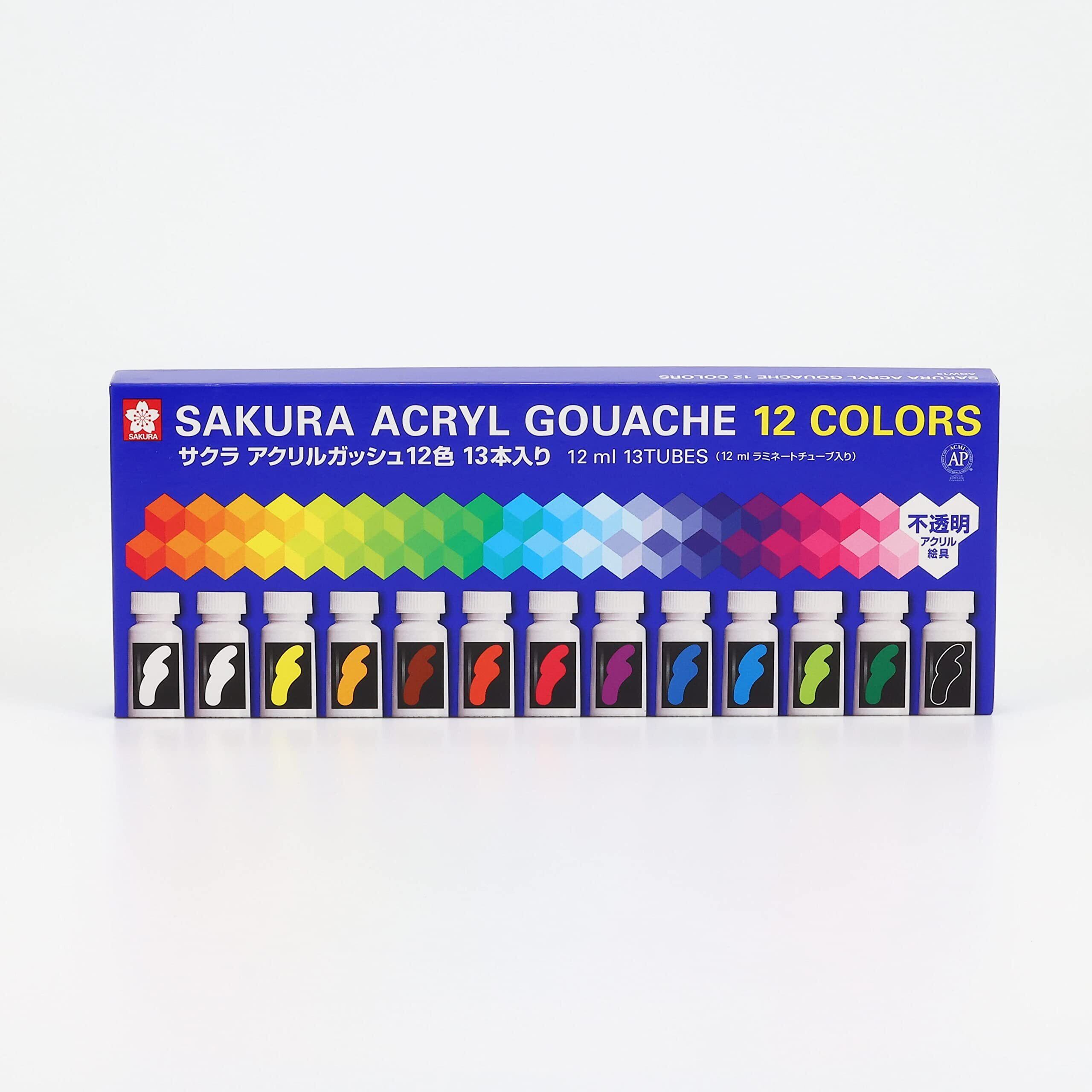 サクラクレパス 絵の具 アクリルガッシュ 12色13本(白2本)入り AGW13
