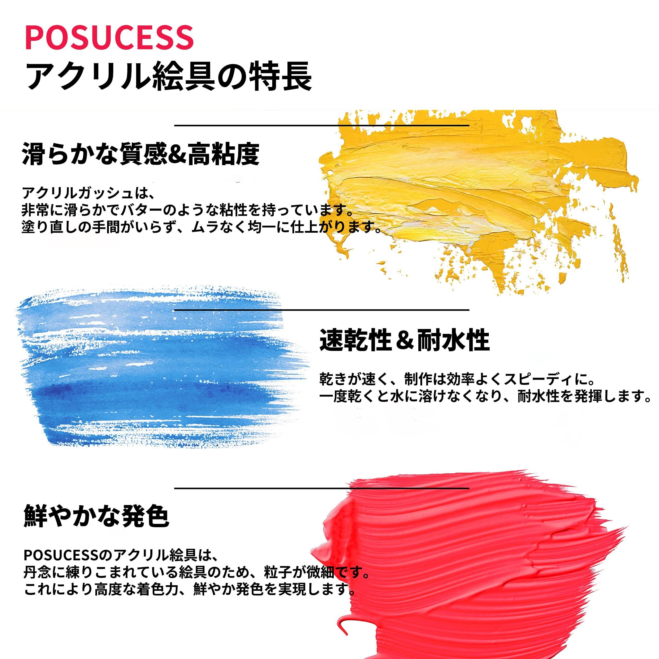 【高品質のガッシュ】 最高級の顔料を使用して、発色が綺麗です。滑らかな質感と優れた粘着性で、塗り直しの手間がいらず、ムラなく均一に仕上がります。また、乾きが速く、制作は効率よくスピーディに。一度乾くと水に溶けなくなり、耐水性を発揮します。色のバリエーションを求める場面に、完全な混合性を提供するガッシュセットで想像力を広めて、無限な色彩の世界が作り出せます。