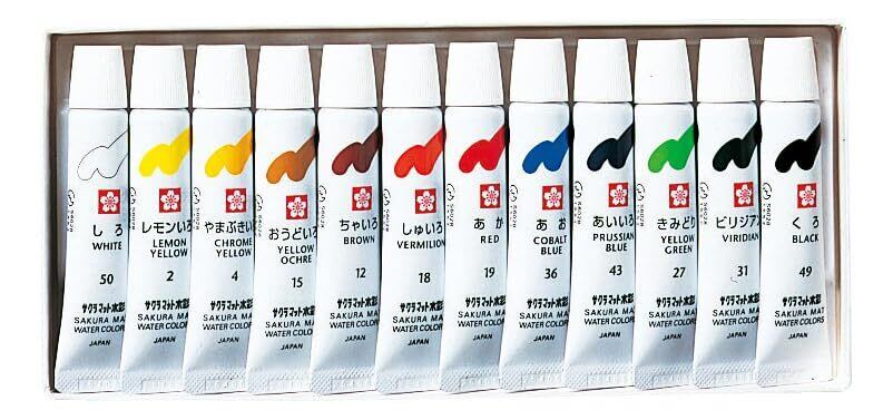 サクラクレパス 絵の具 マット水彩 ラミネートチューブ 12色セット EMW12